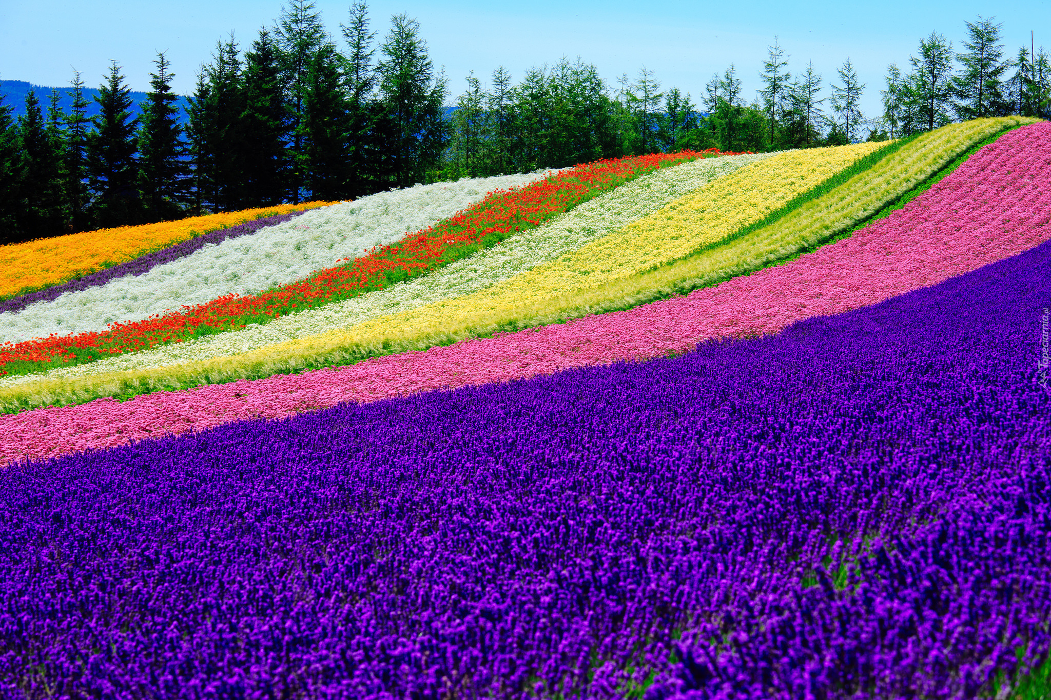 Edytor tapety: Plantacja kwiatów na farmie Tomita Farm