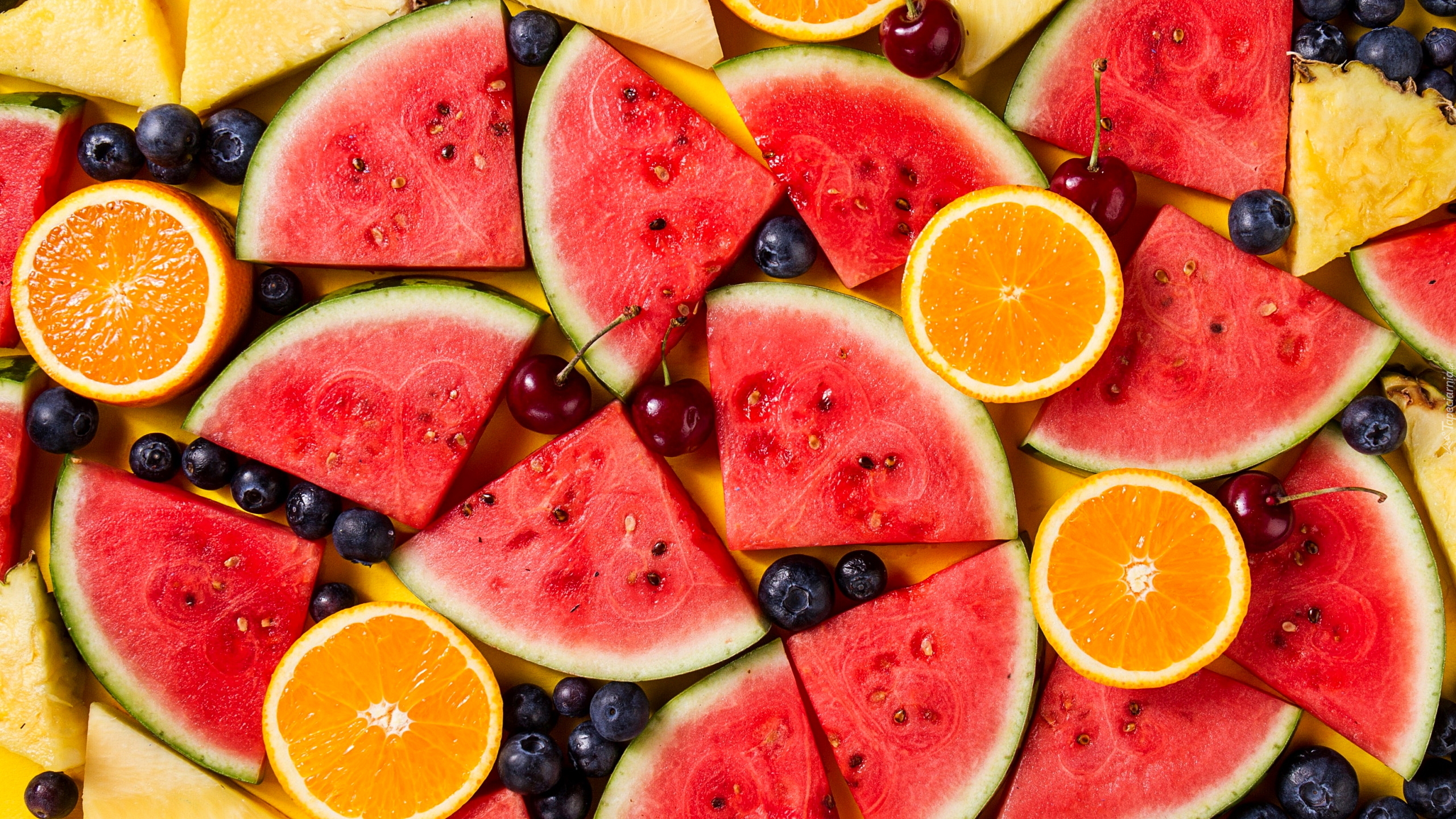 Edytor tapety: Kawałki arbuza i połówki pomarańczy