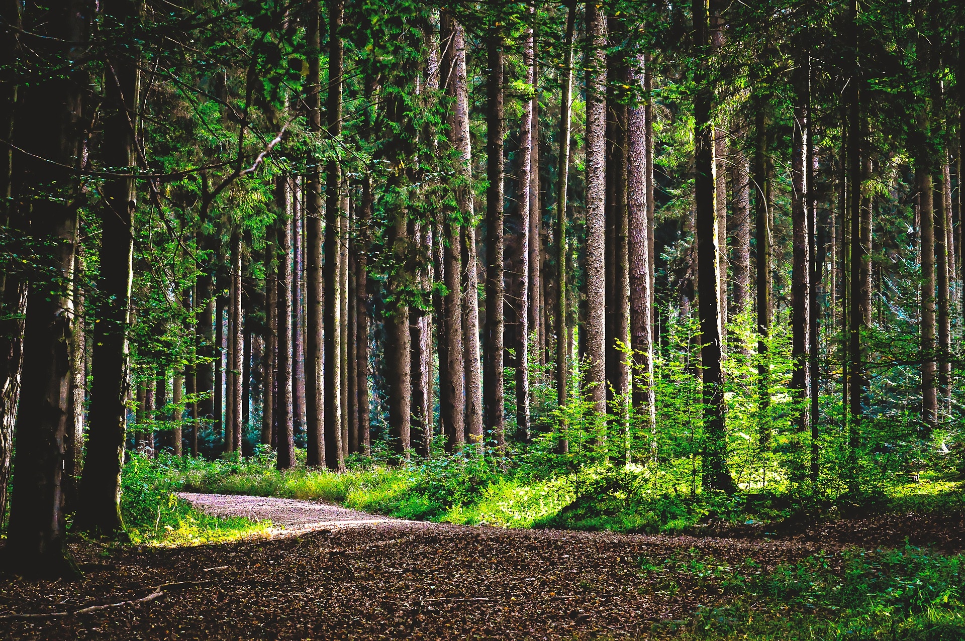 Edytor tapety: Słoneczny dzień w zielonym lesie