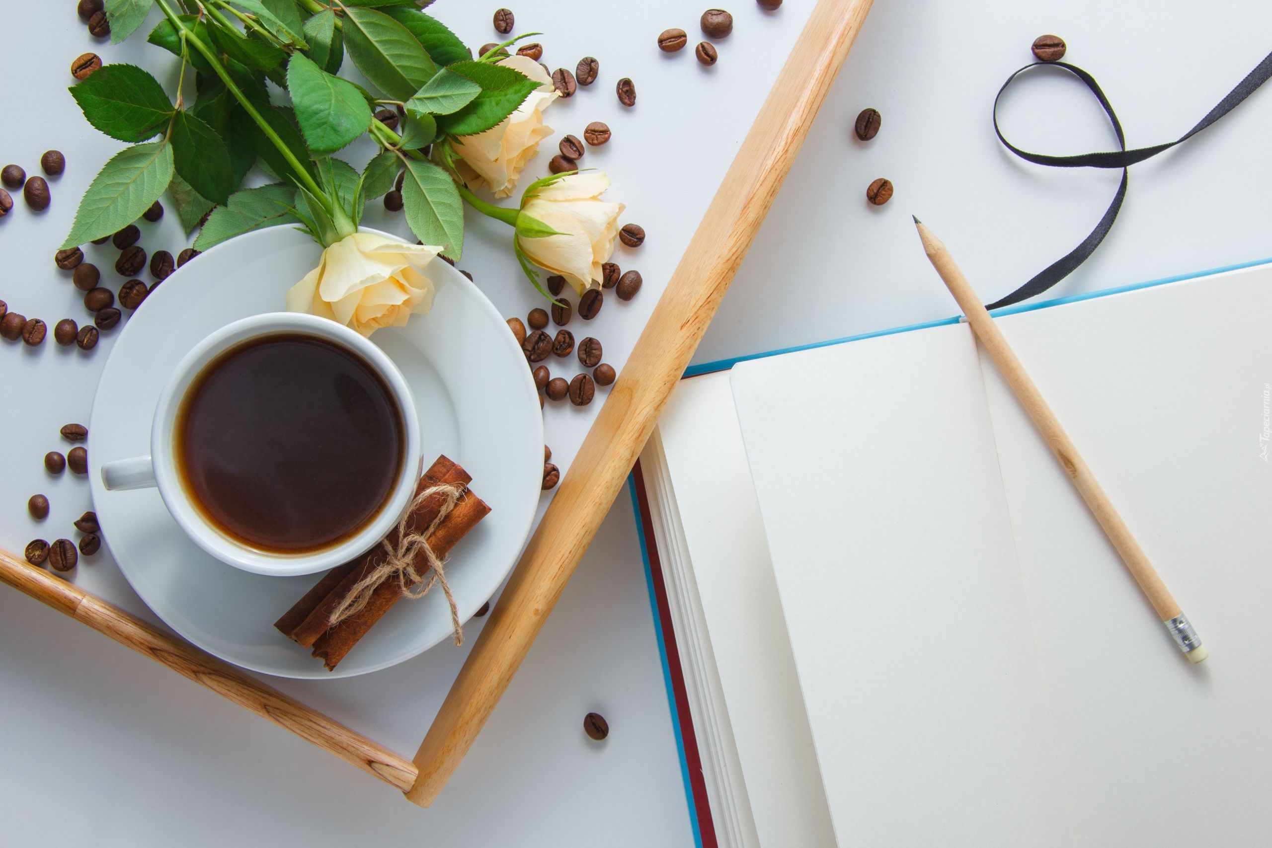 Edytor tapety: Róże i kawa na tacy