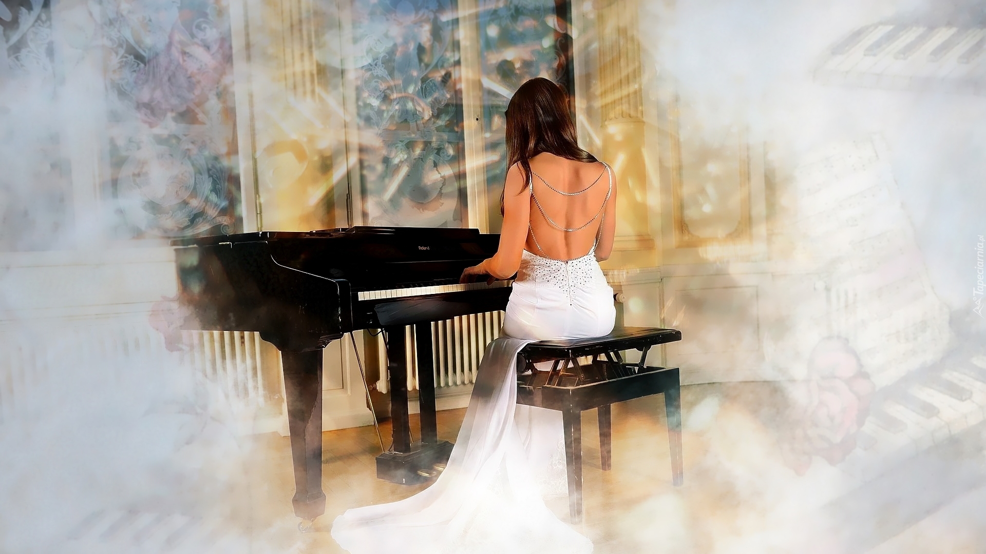 Edytor tapety: Kobieta grająca na fortepianie