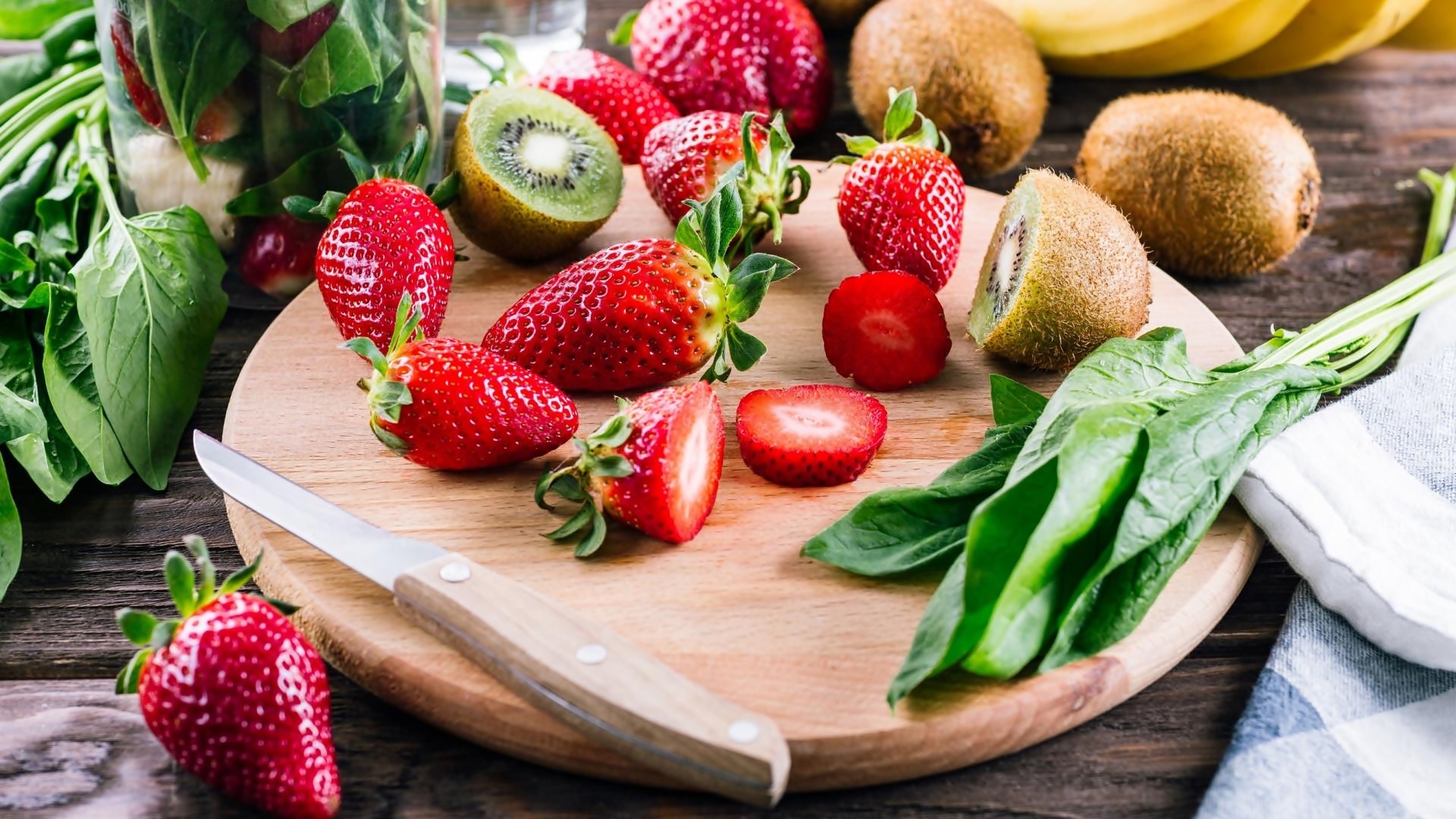 Edytor tapety: Truskawki i kiwi na desce