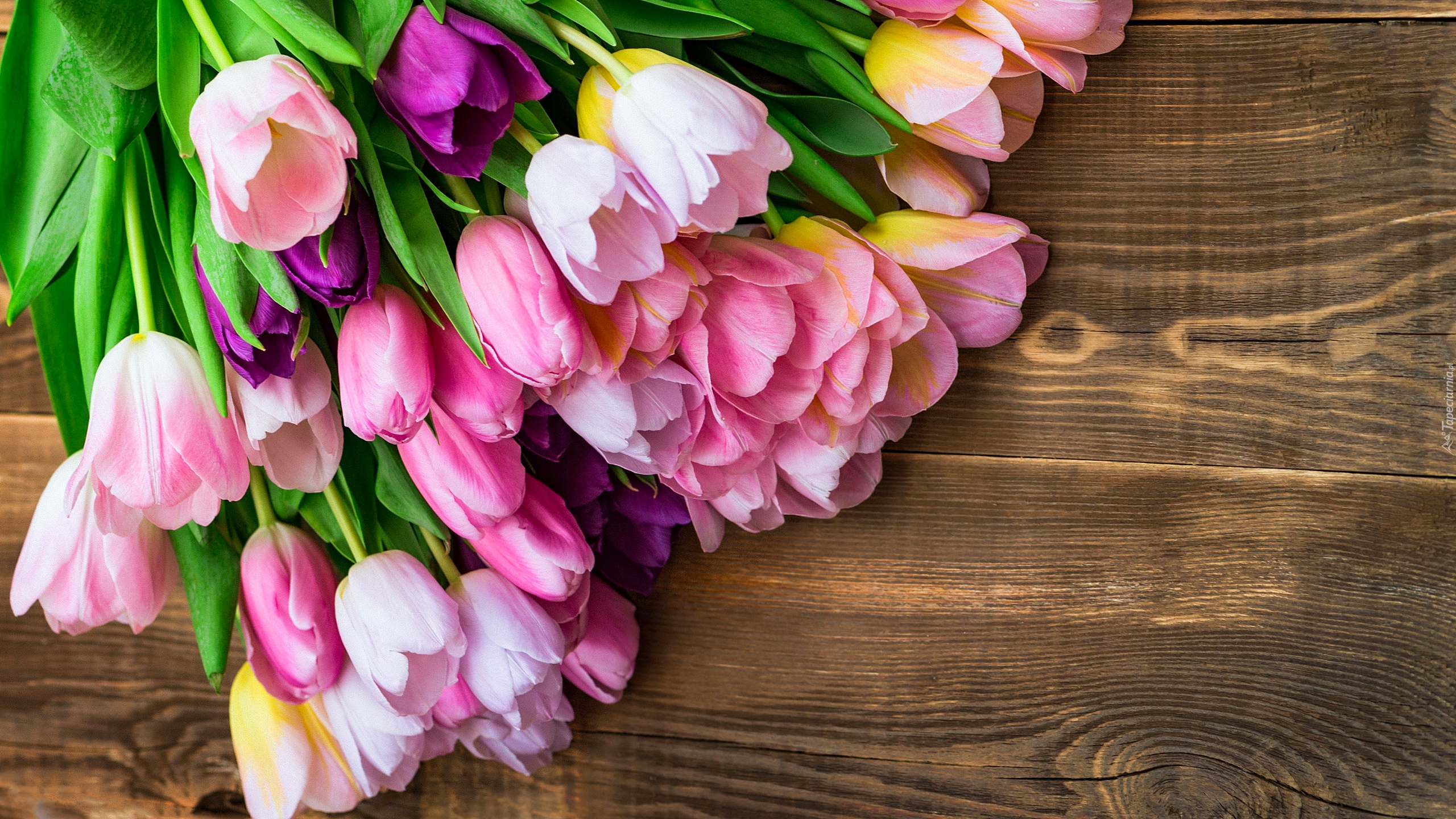 Edytor tapety: Kolorowe tulipany na drewnie