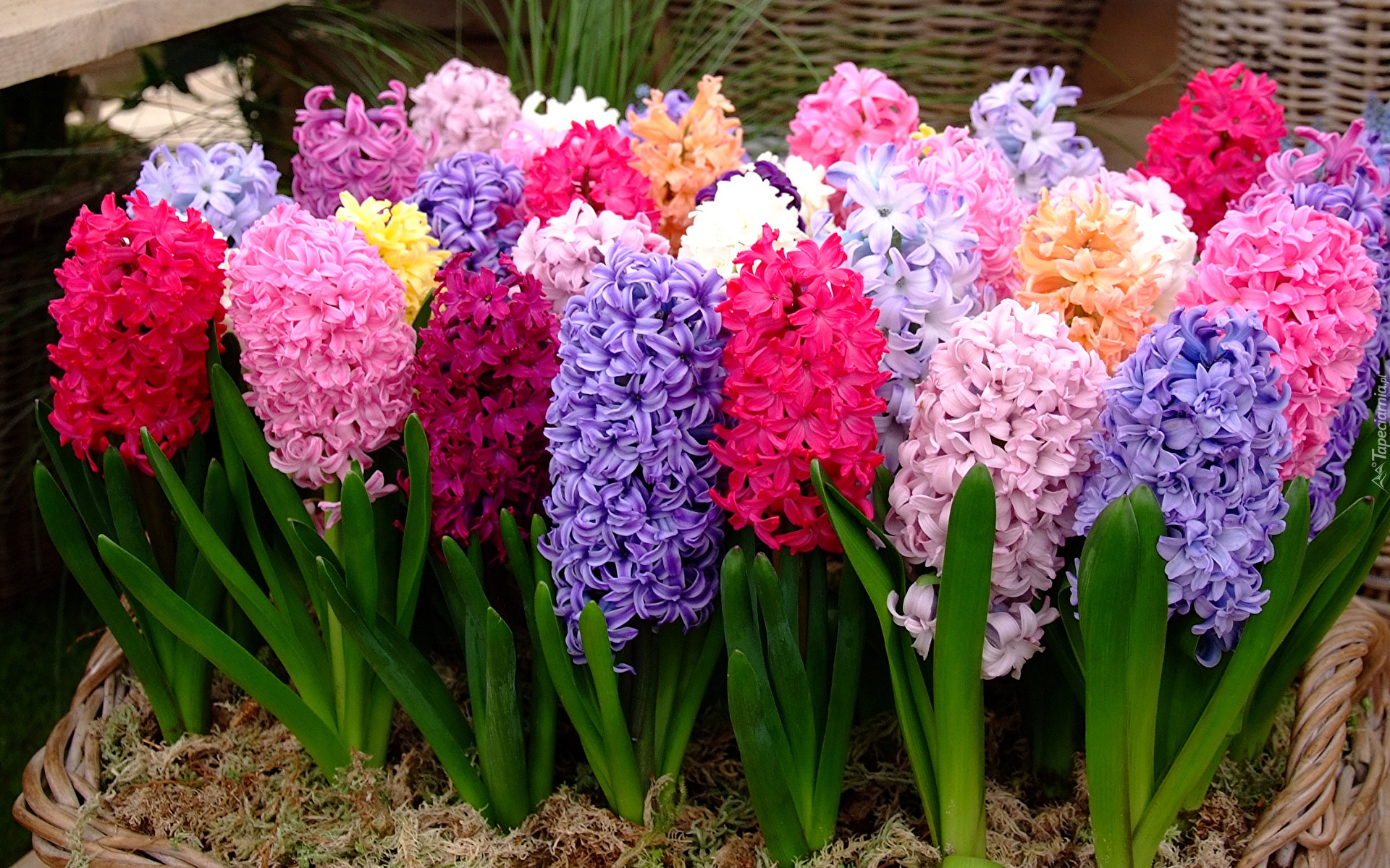 Edytor tapety: Kolorowe hiacynty w koszu