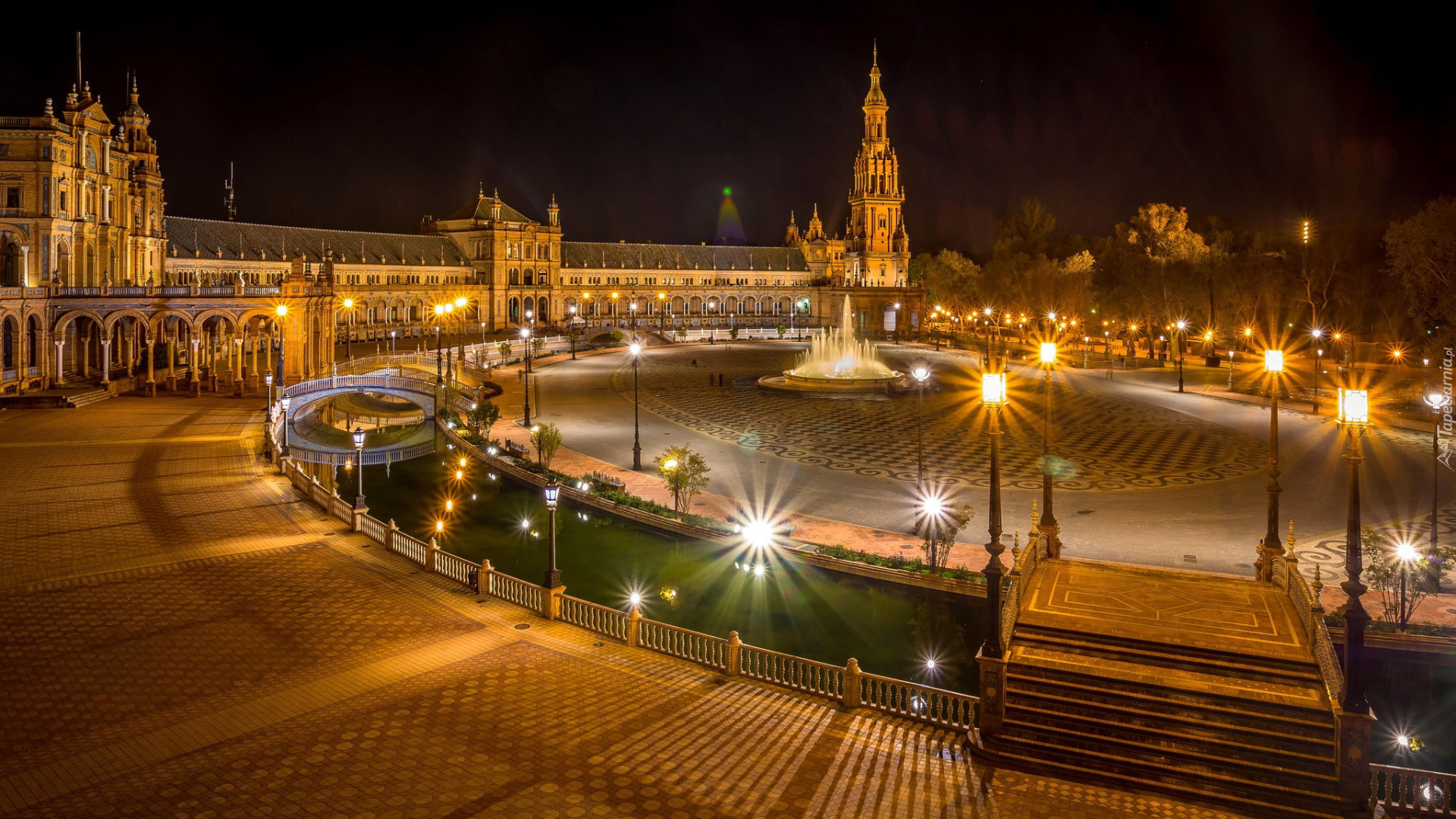 Edytor tapety: Plac Hiszpański w Sewilli nocą