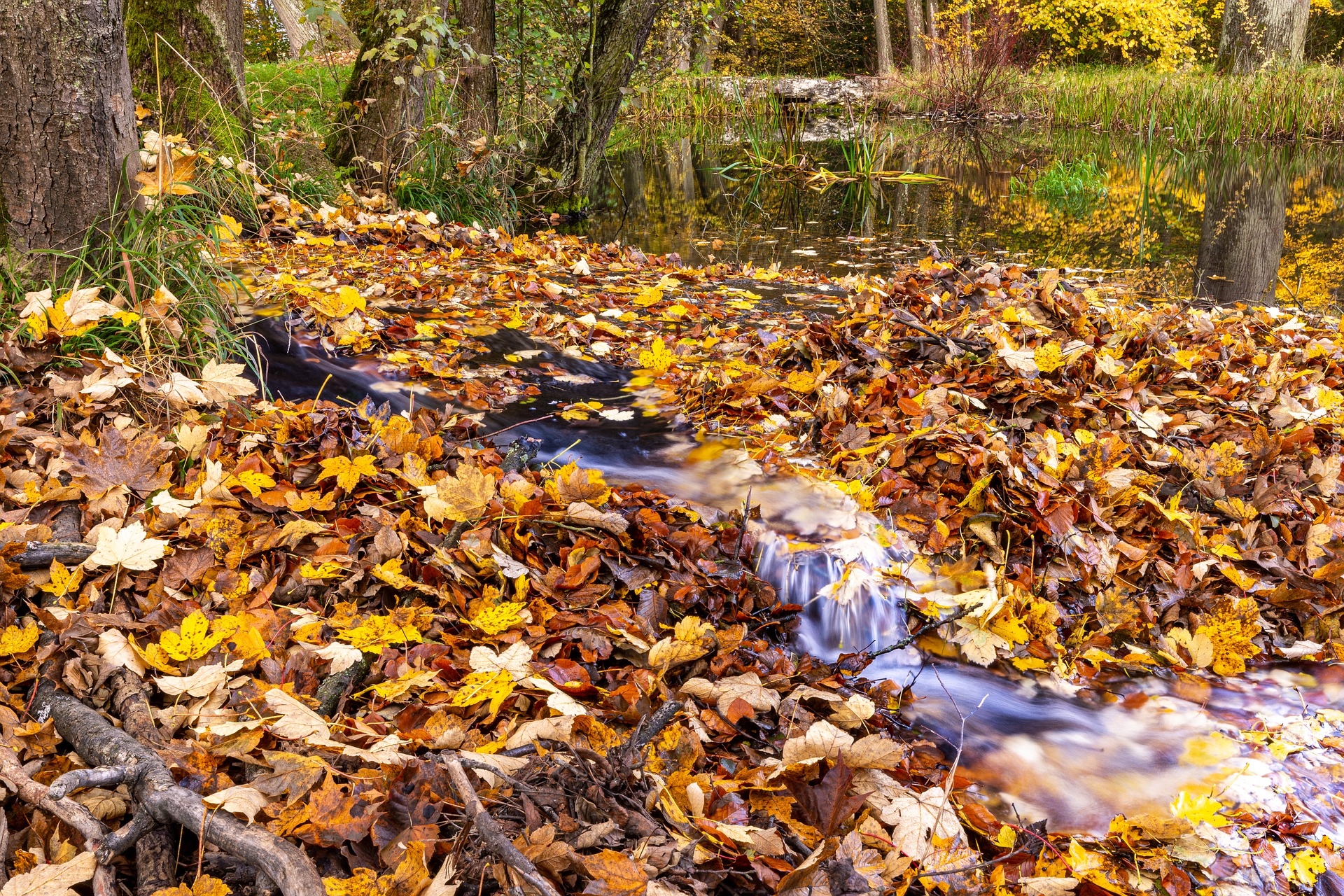 Edytor tapety: Potok w jesiennym lesie