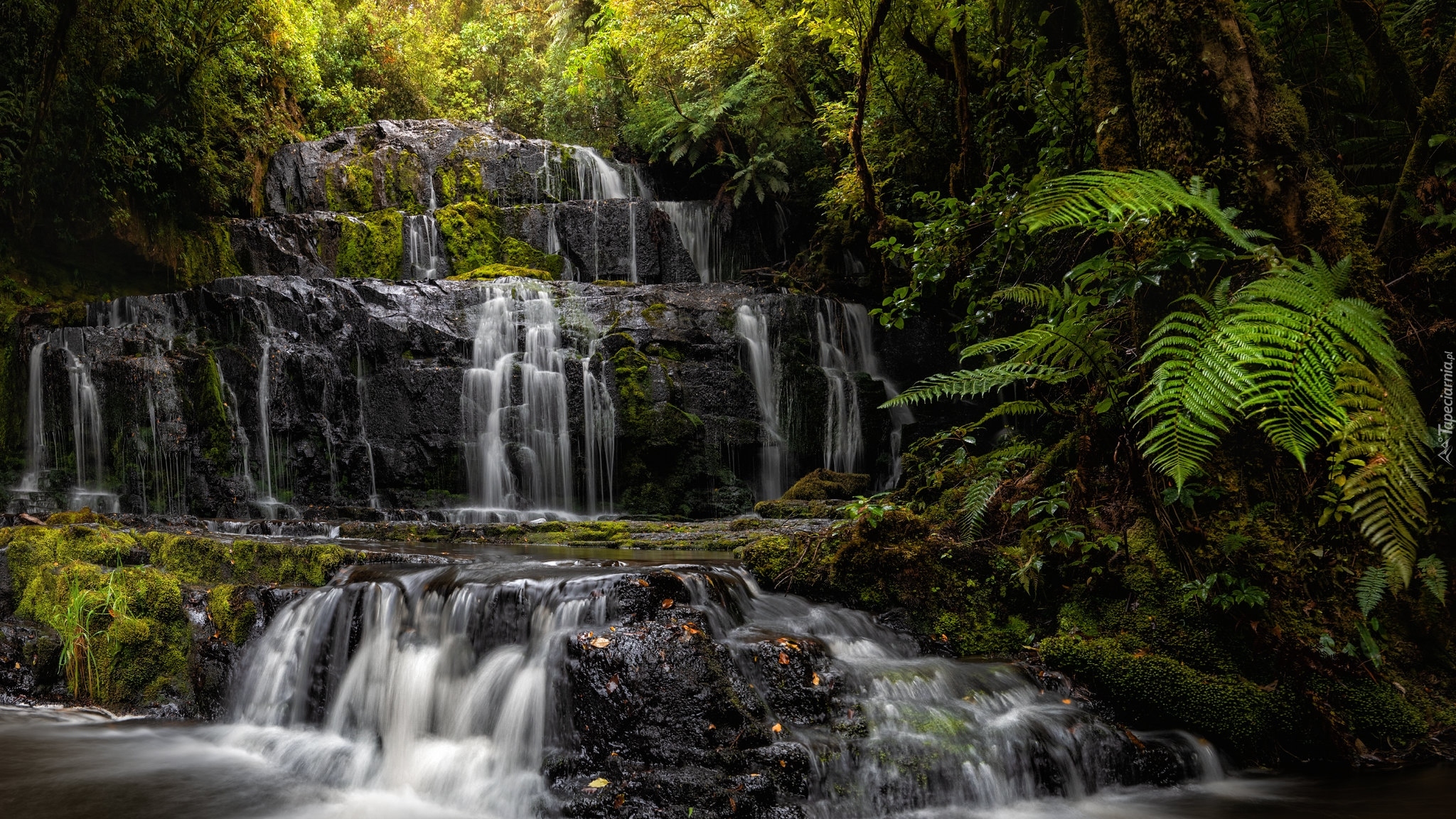 Edytor tapety: Wodospad Purakaunui Falls w Nowej Zelandii