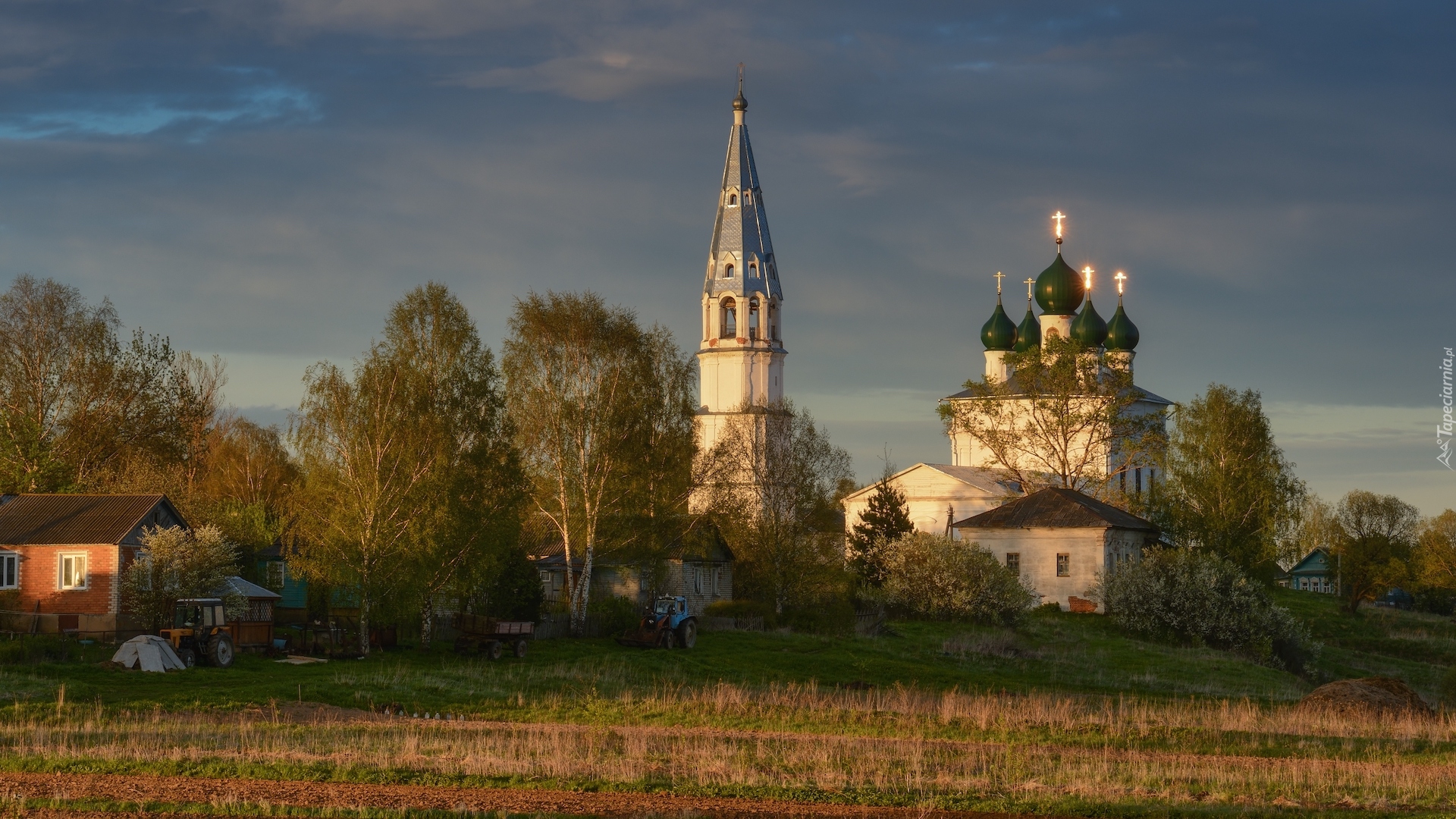 Edytor tapety: Cerkiew i dzwonnica we wsi Osenevo w Rosji