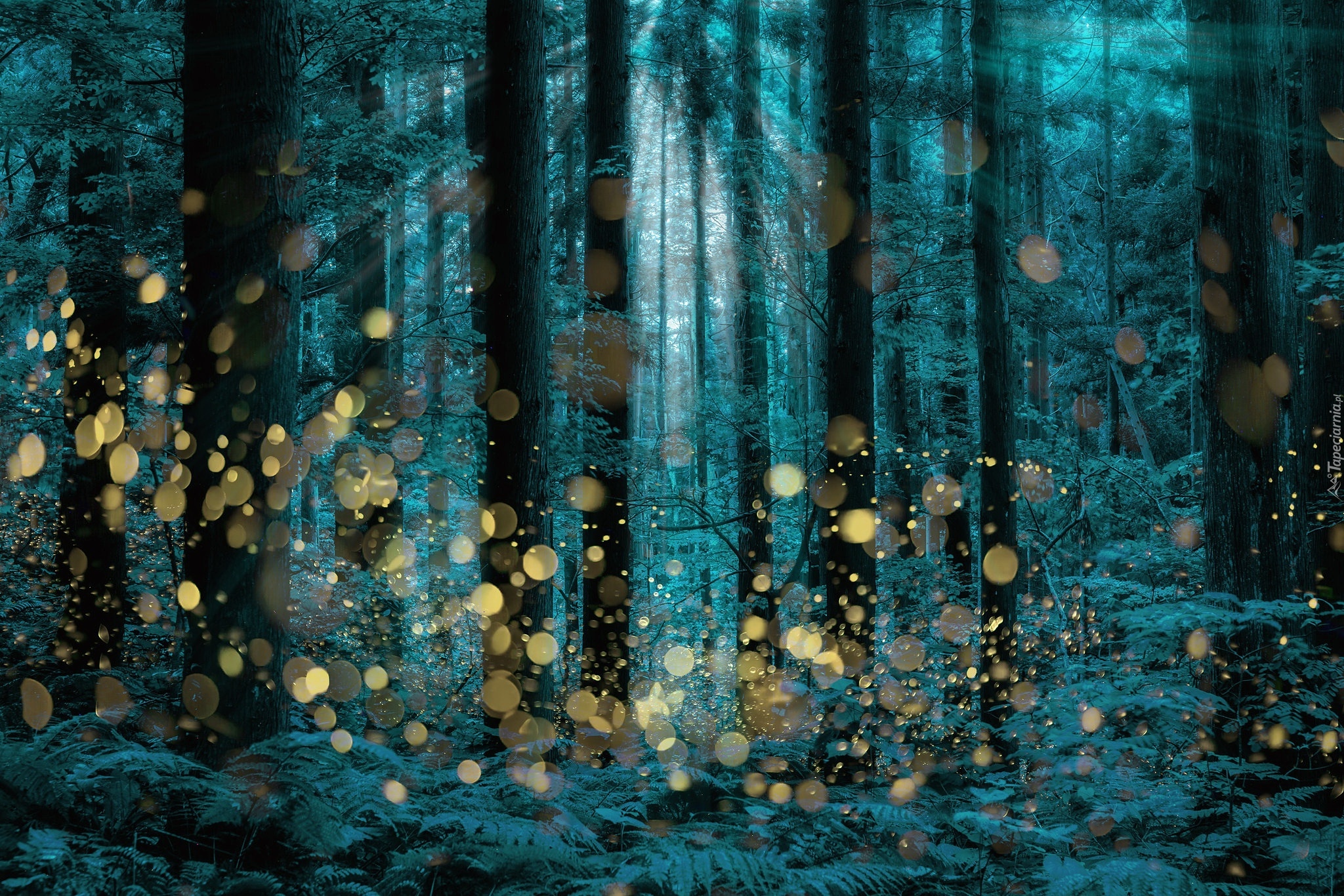 Edytor tapety: Paprocie pod drzewami w słonecznych promieniach