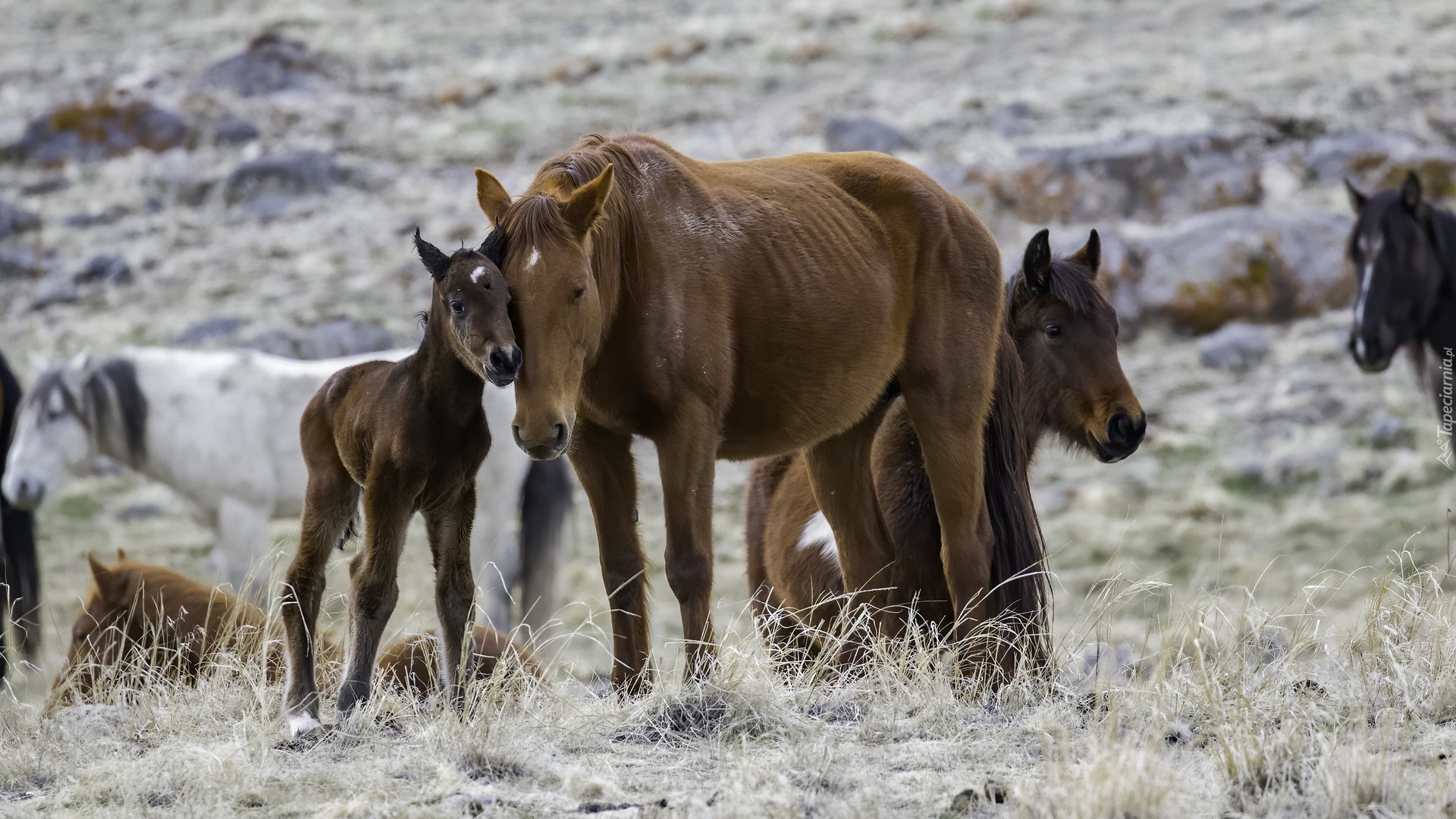 Edytor tapety: Źrebię obok klaczy na pastwisku