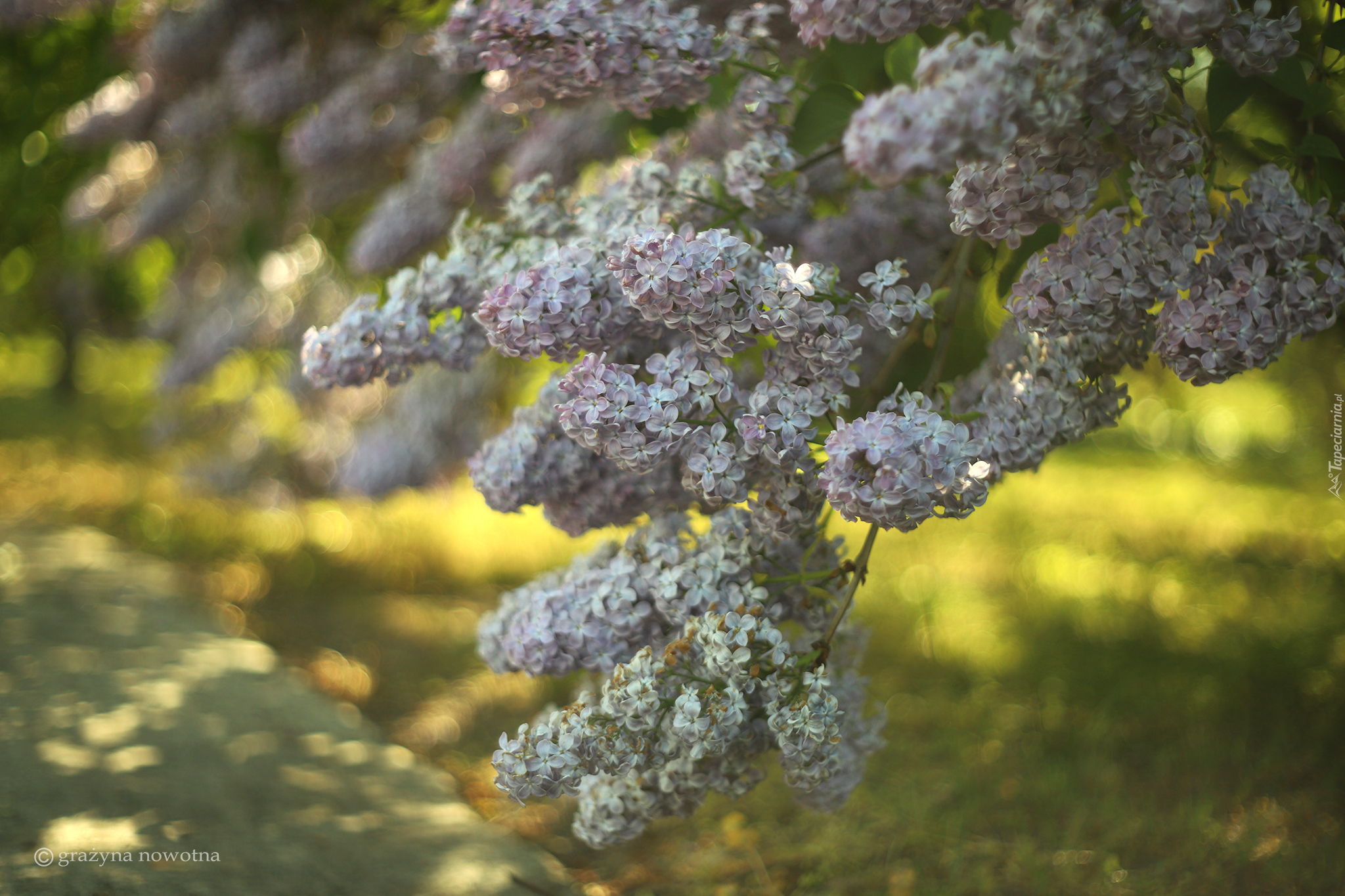 Edytor tapety: Jasnofioletowe gałązki bzu na rozmytym tle