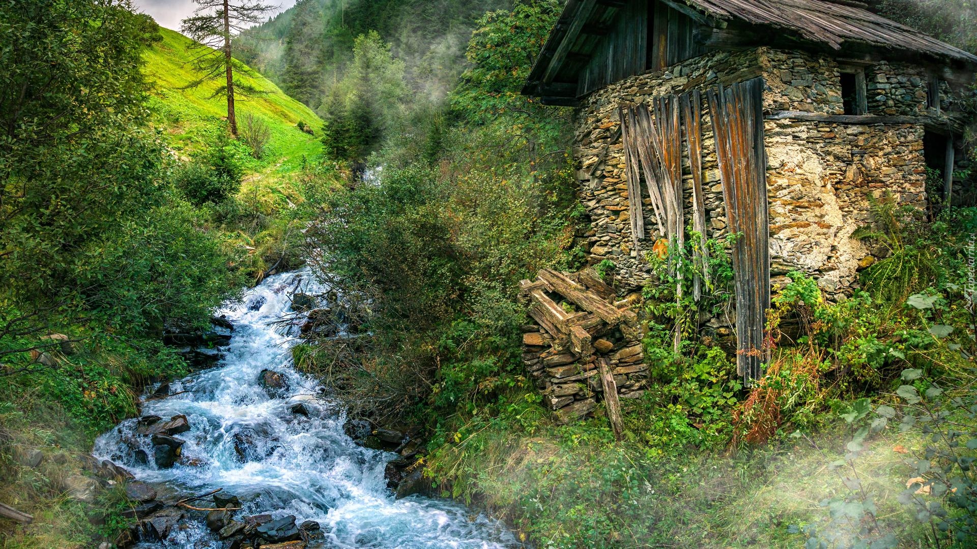 Edytor tapety: Ruina domu przy potoku
