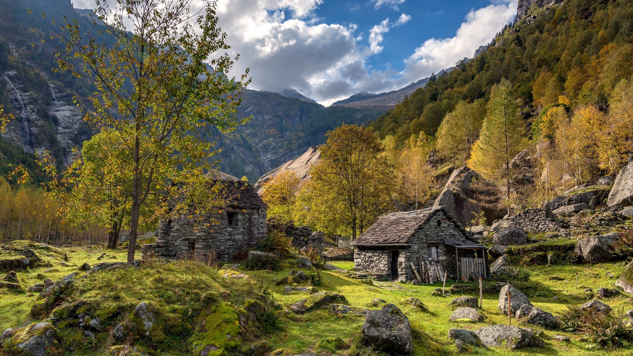 Edytor tapety: Kamienne domy w szwajcarskiej dolinie Valle Maggia