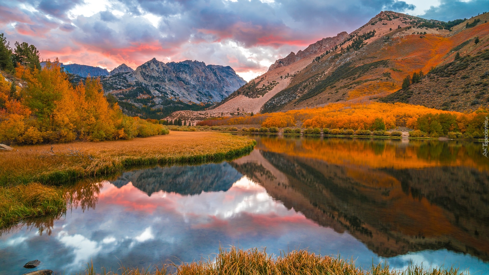 Edytor tapety: Odbicie gór w jeziorze North Lake