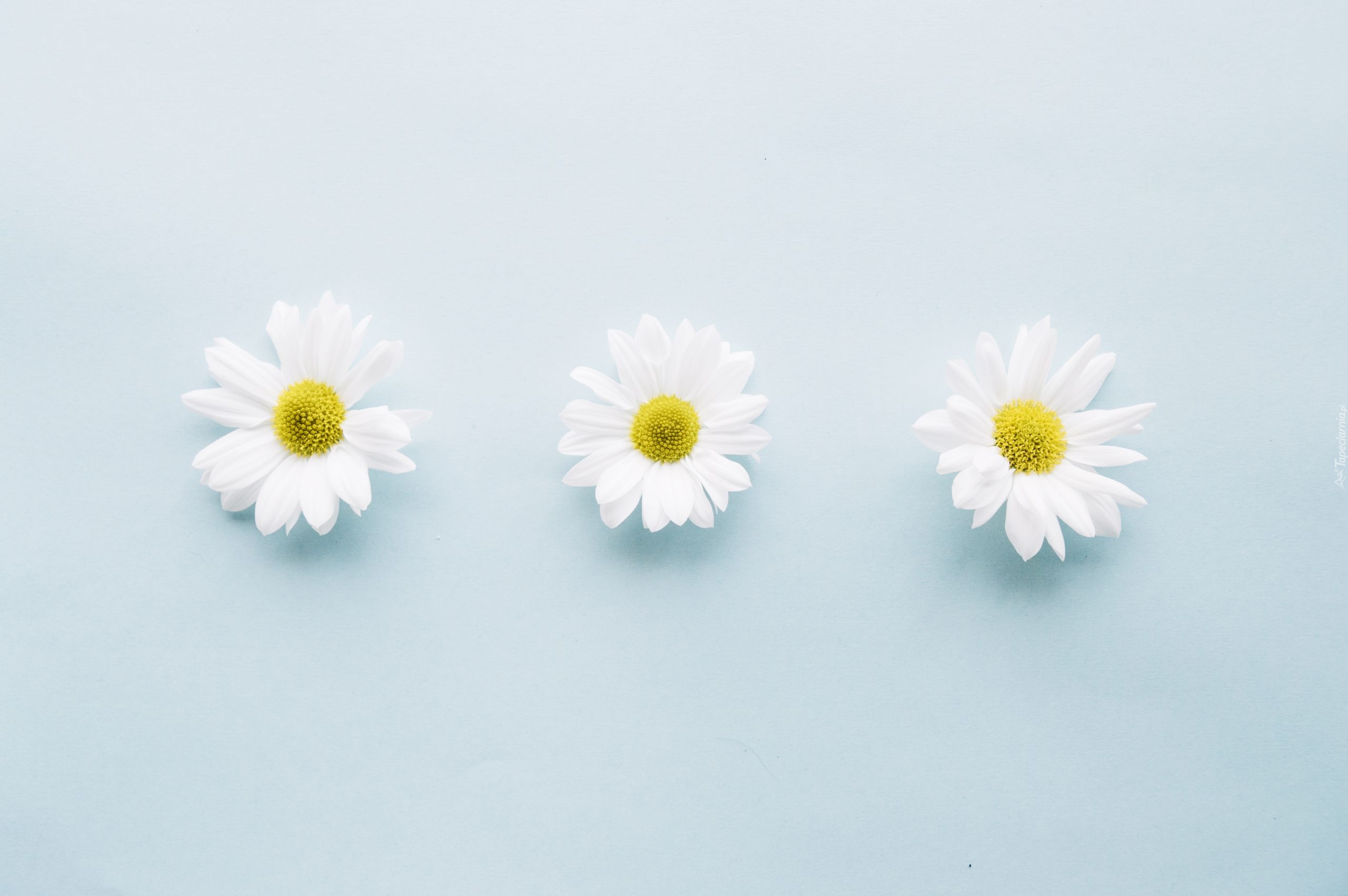 Edytor tapety: Trzy stokrotki na jasnoniebieskim tle
