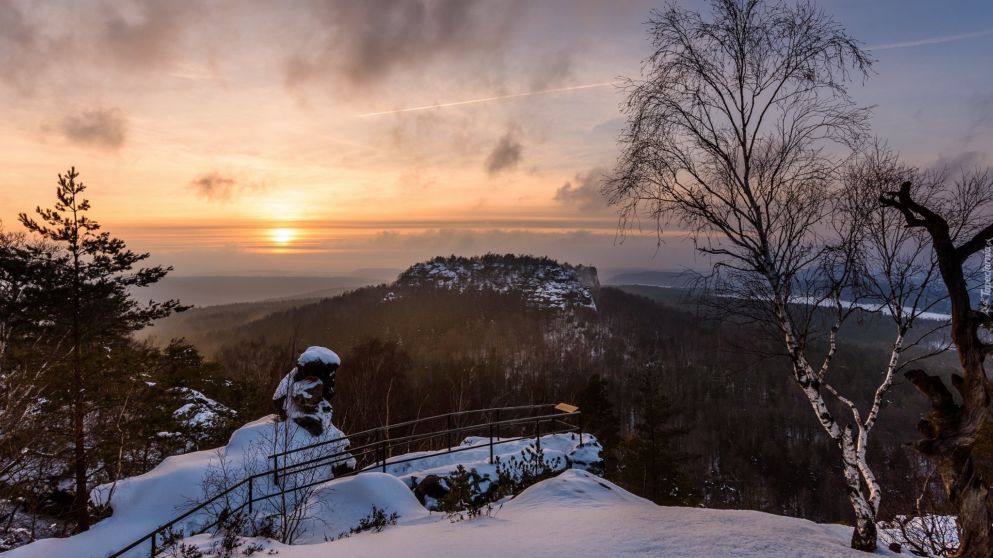 Edytor tapety: Zachód słońca nad górami zimową porą