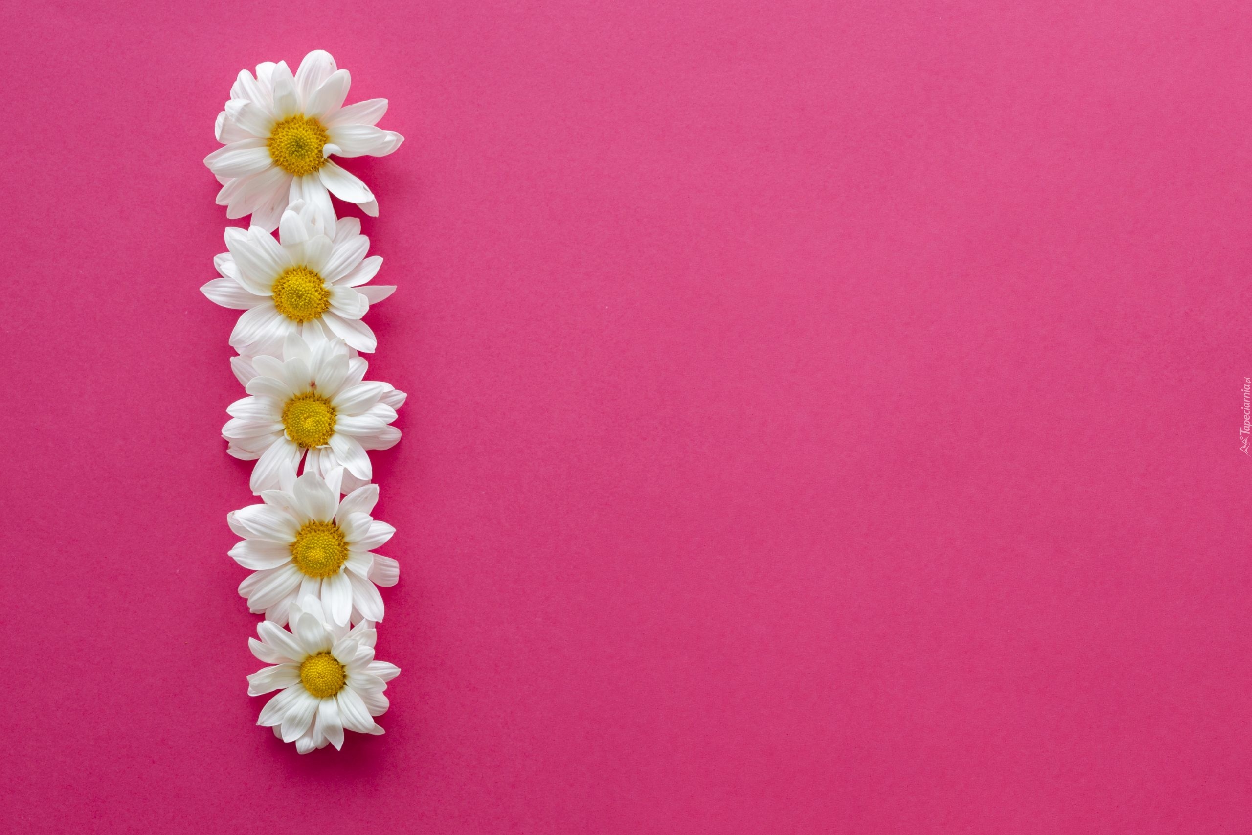 Edytor tapety: Pięć stokrotek na różowym tle