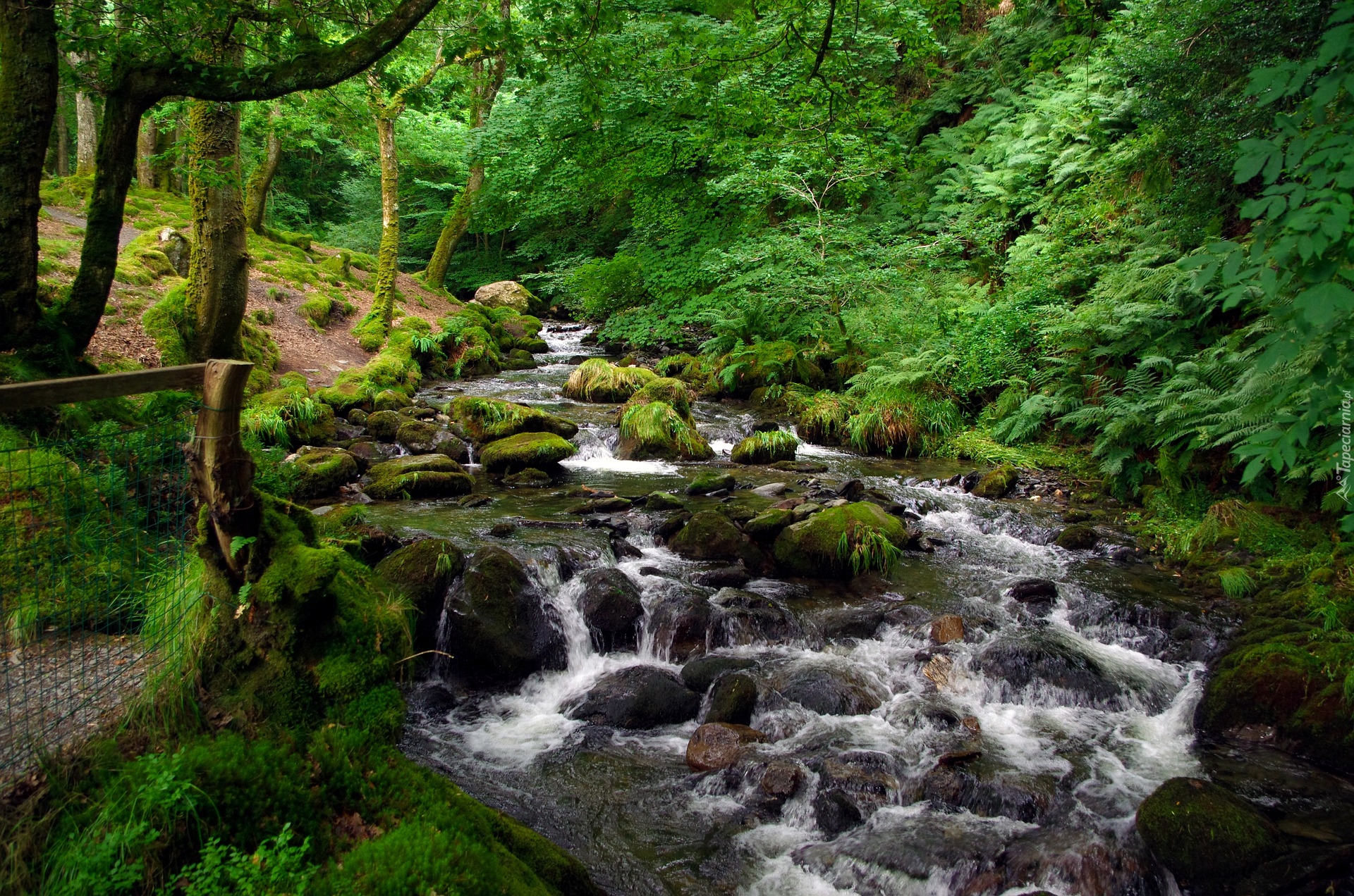 Edytor tapety: Potok w zielonym lesie