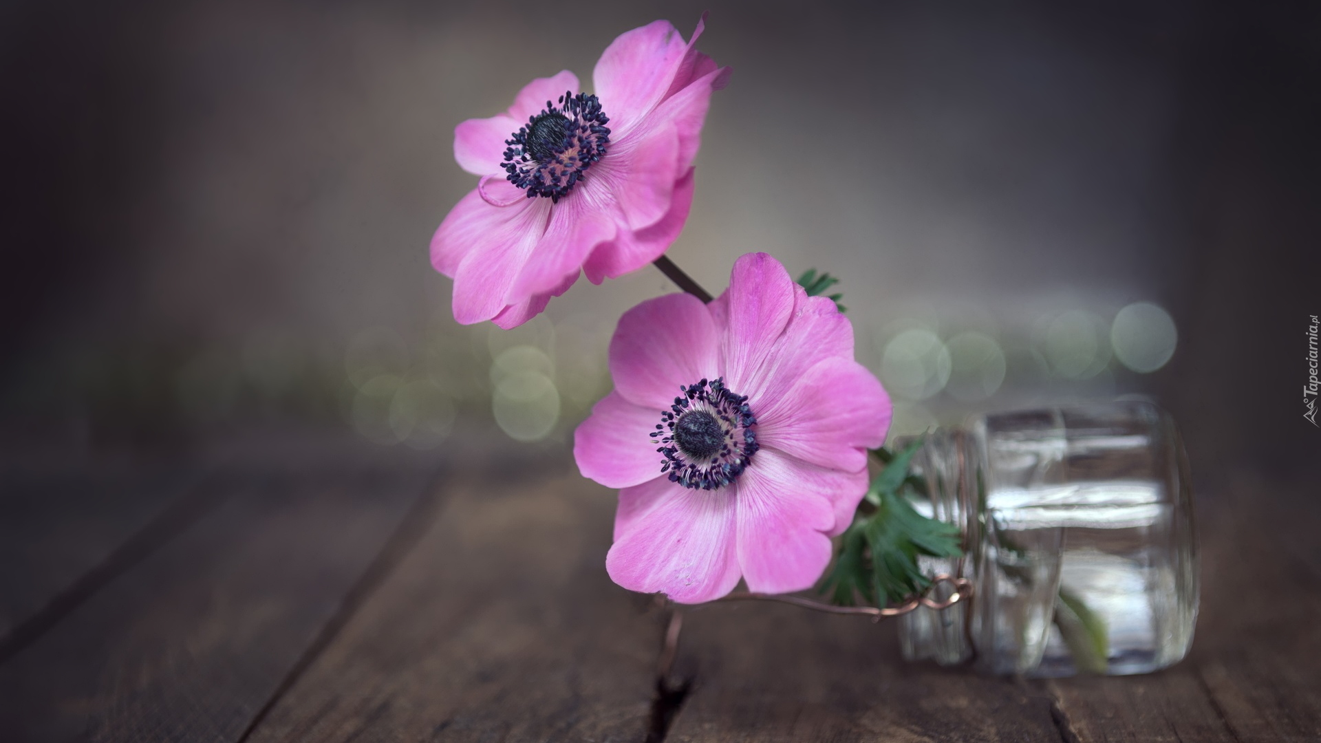 Edytor tapety: Dwa anemony w przewróconym słoiku