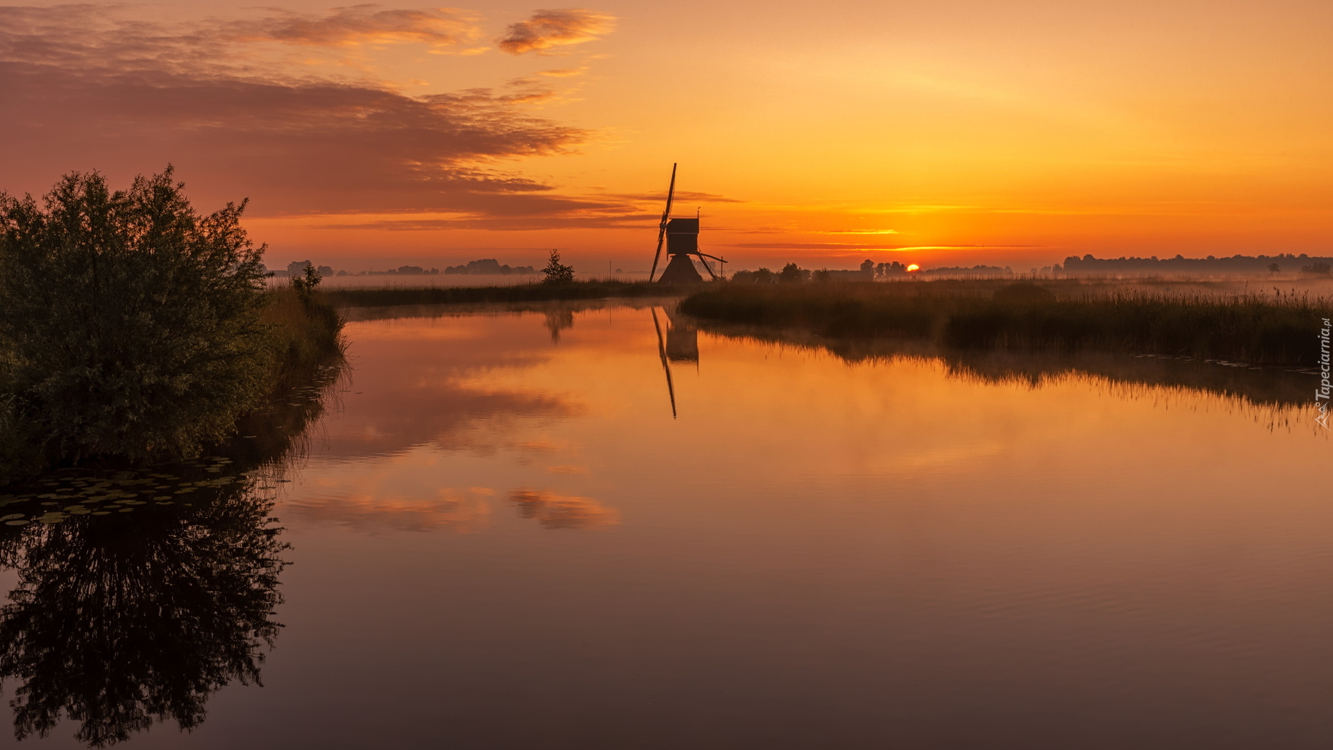 Edytor tapety: Wiatrak Broekmolen w Streefkerk nad rzeką Lek