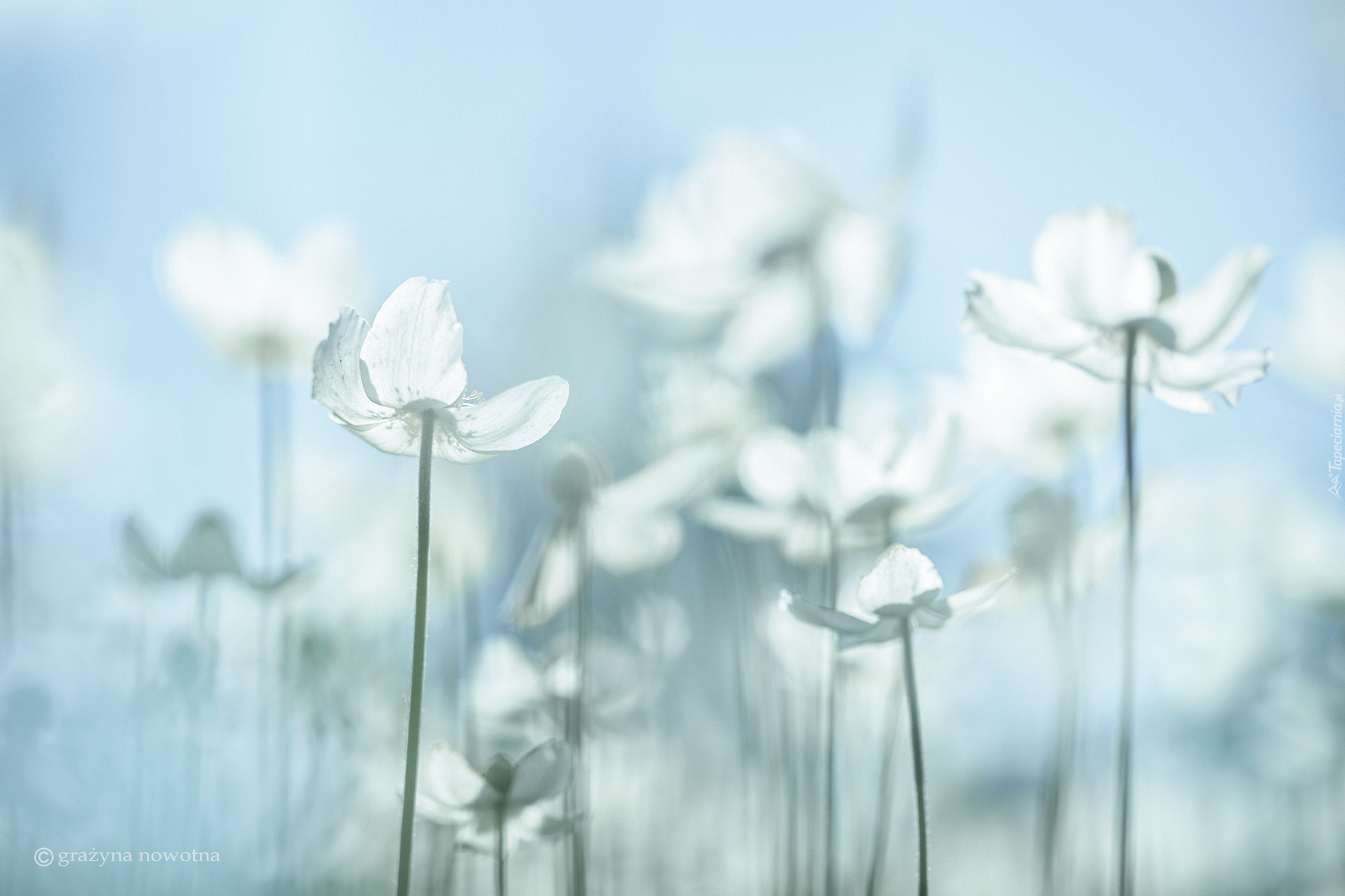 Edytor tapety: Białe zawilce wielkokwiatowe na tle nieba