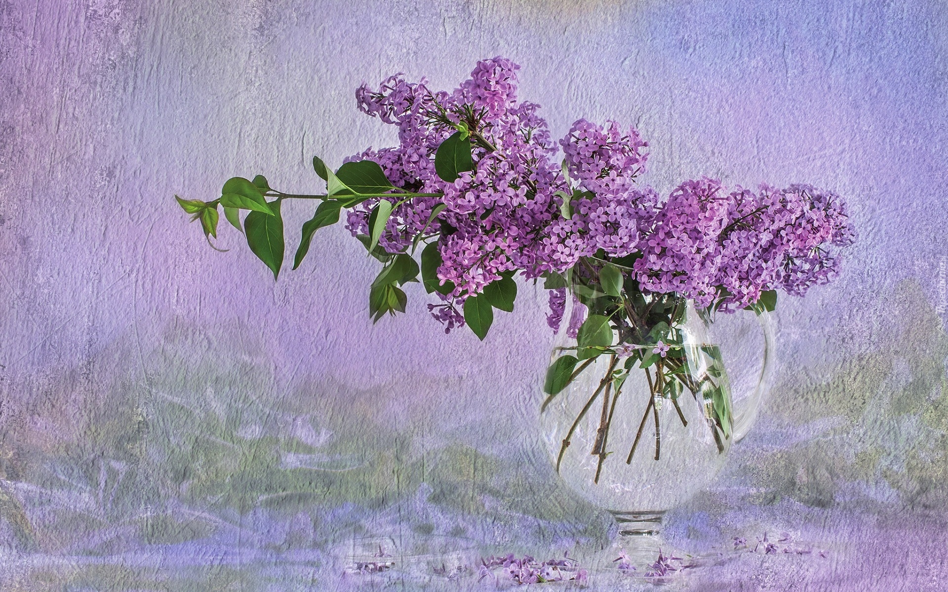 Edytor tapety: Liliowy bez w szklanym wazonie