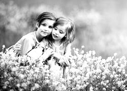 Edytor tapety: Przytulone dziewczynki w rzepaku