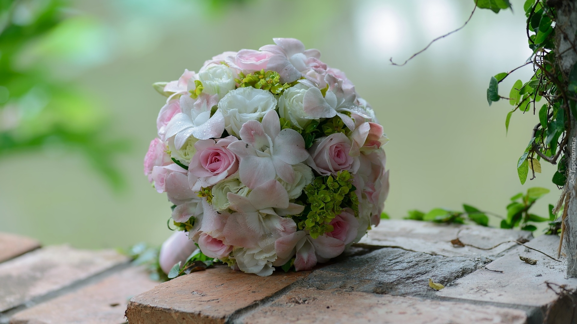 Edytor tapety: Bukiet ślubny na murku