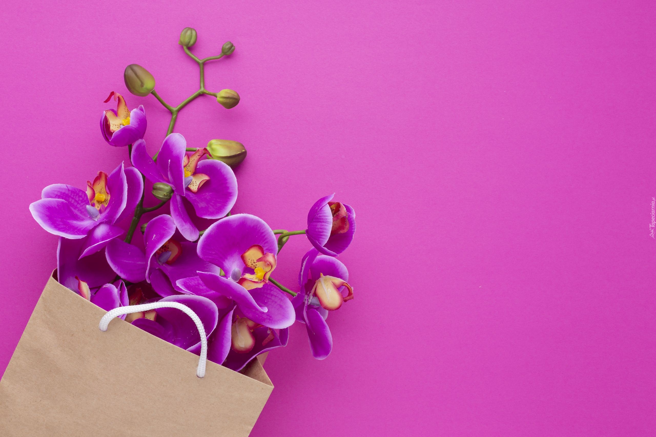 Edytor tapety: Fioletowe storczyki na różowym tle