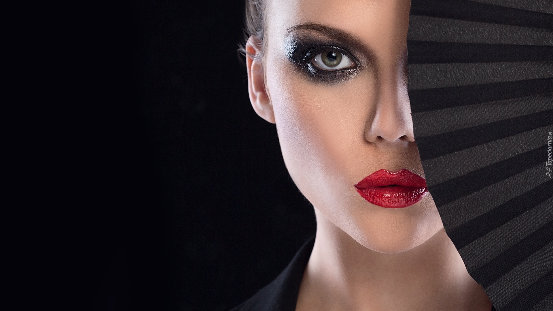 Edytor tapety: Kobieta z wachlarzem przy twarzy