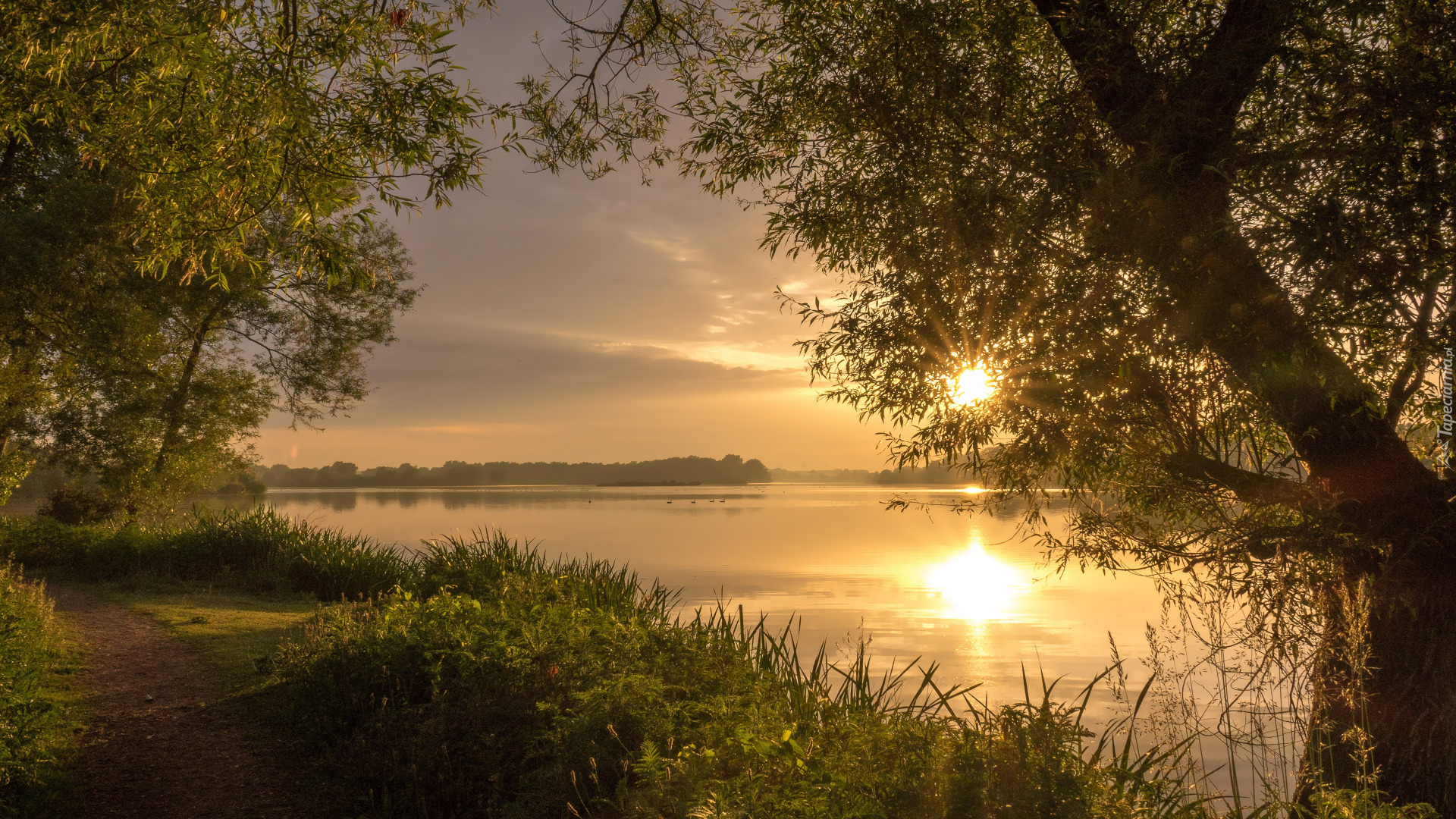 Edytor tapety: Słoneczny poranek nad jeziorem