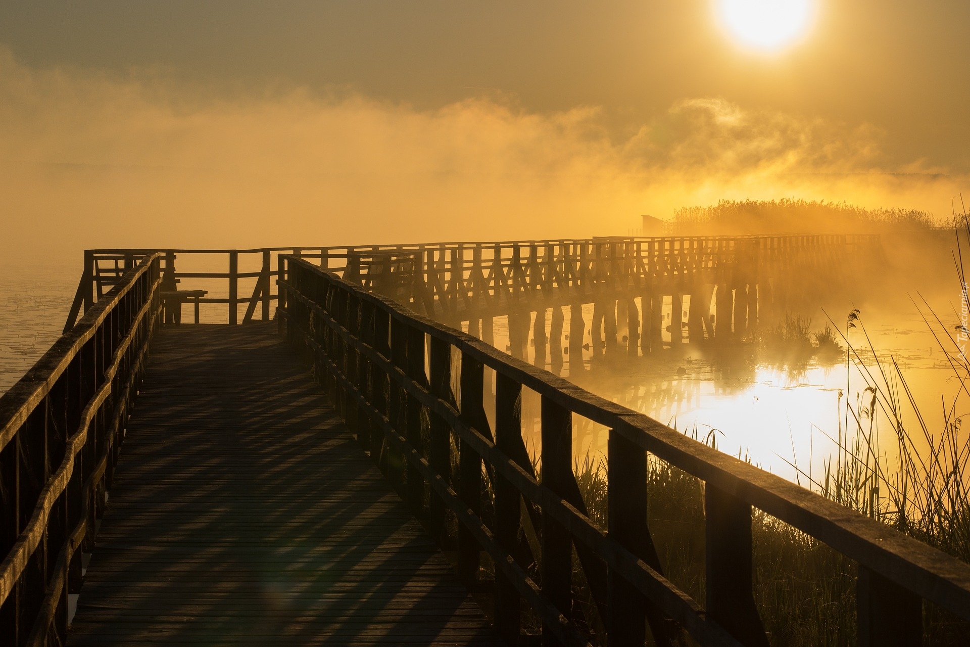 Edytor tapety: Pomost na zamglonym jeziorze Federsee
