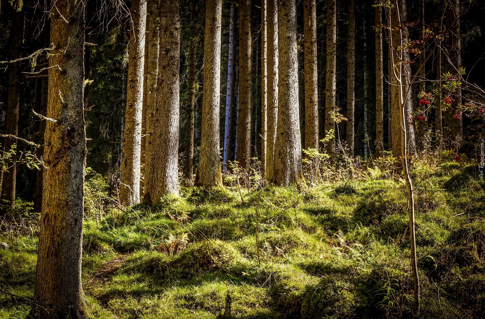 Edytor tapety: Drzewa w lesie