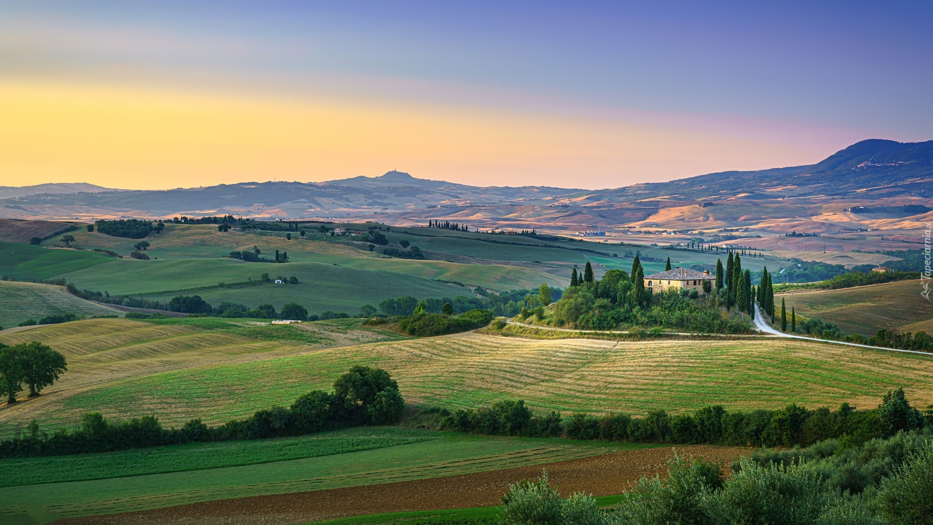 Edytor tapety: Pola uprawne na wzgórzach Toskanii