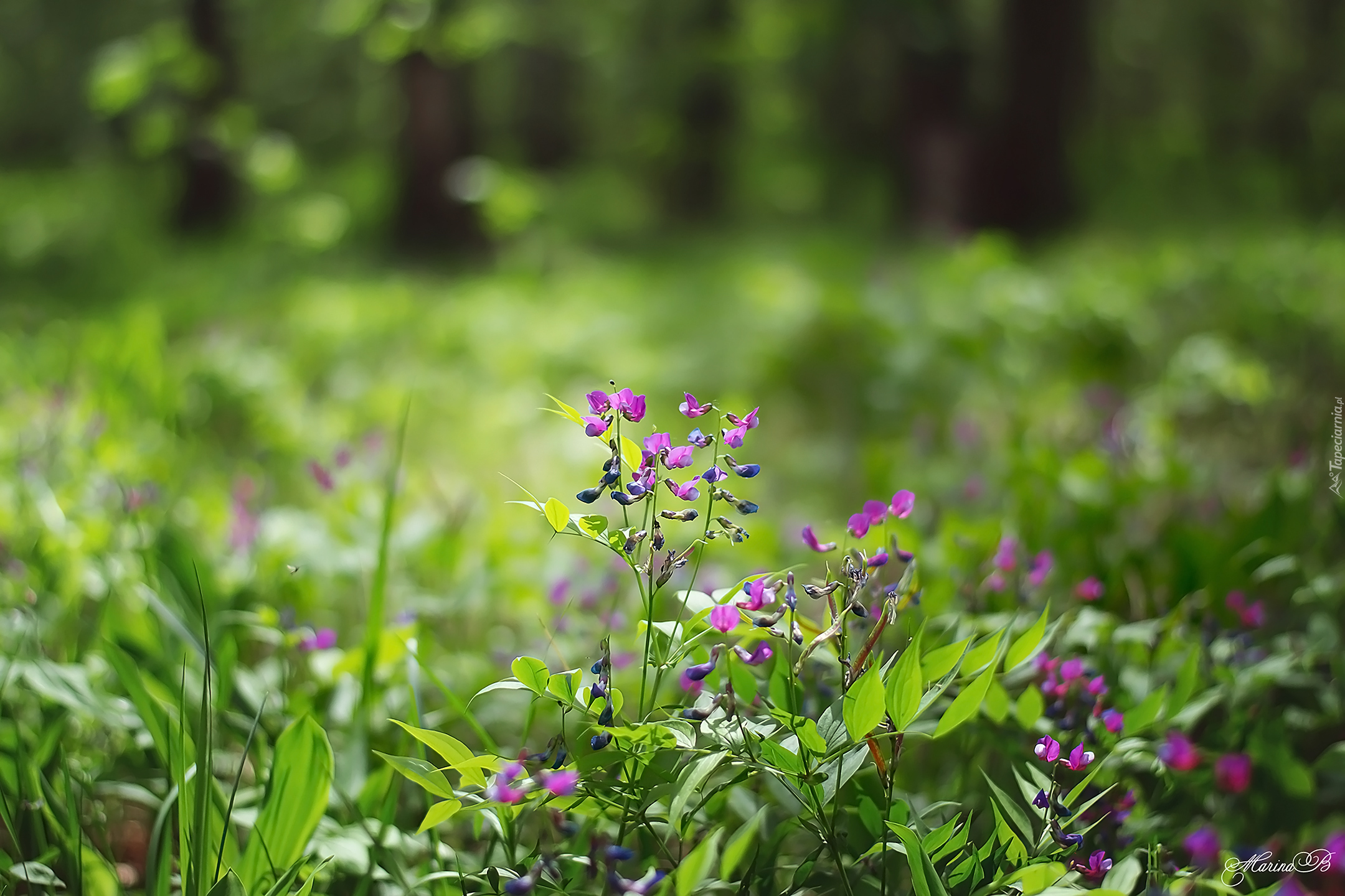 Edytor tapety: Drobne fioletowe kwiaty w trawie