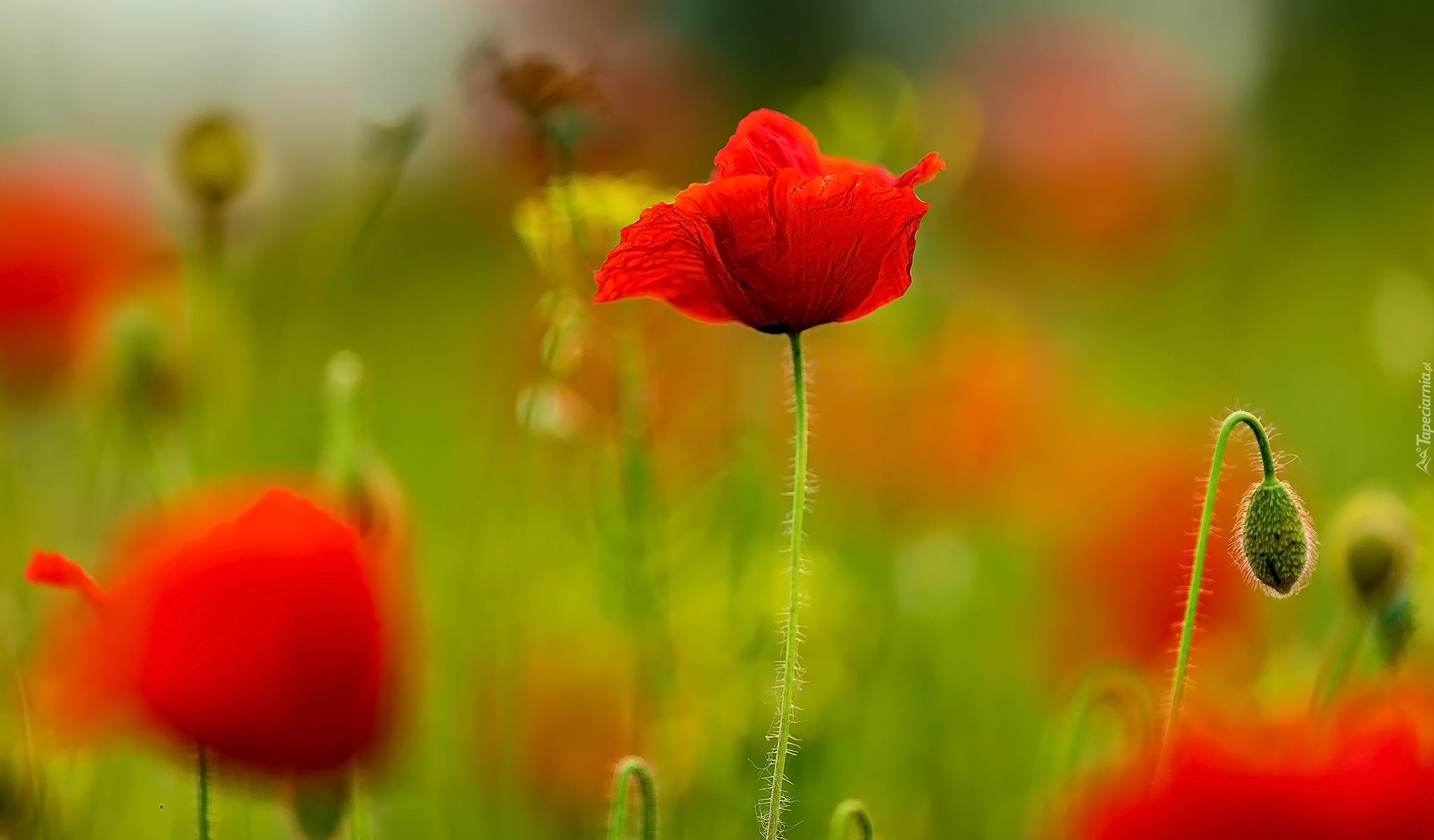 Edytor tapety: Czerwony mak z pąkiem