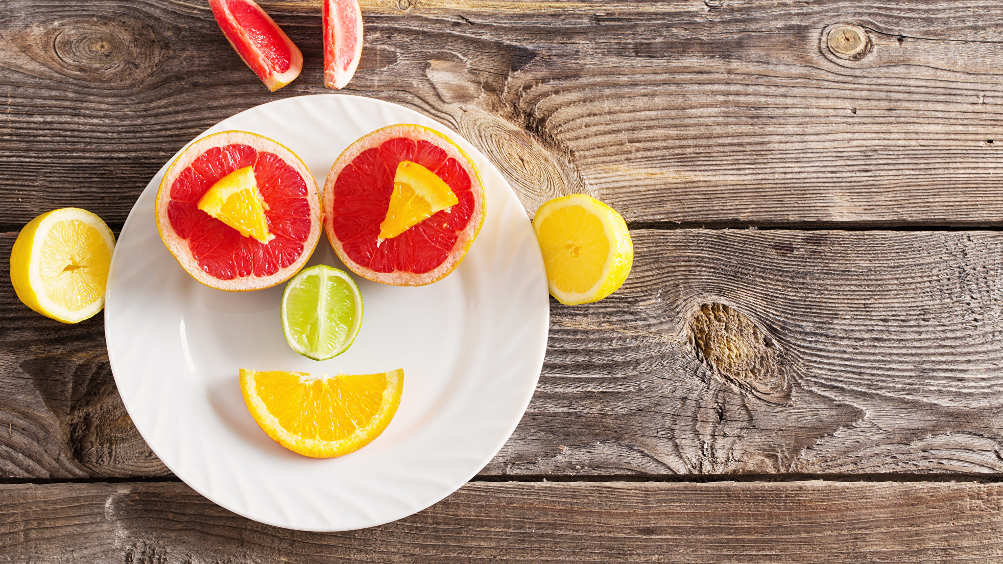 Edytor tapety: Buźka z grejpfrutów i cytryny na taletrzu