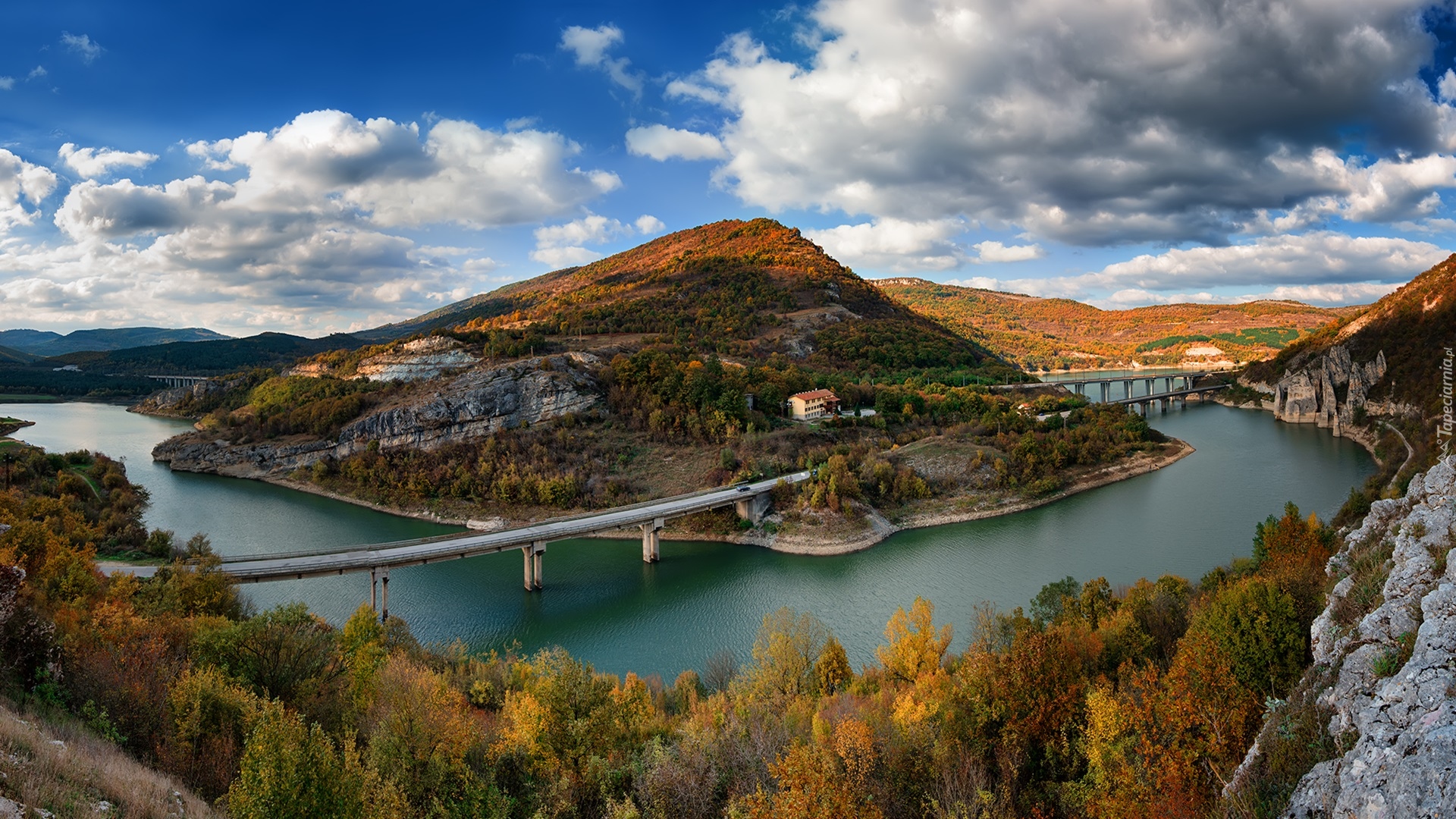 Edytor tapety: Dwa mosty na zbiorniku wodnym Tsonevo w Bułgarii