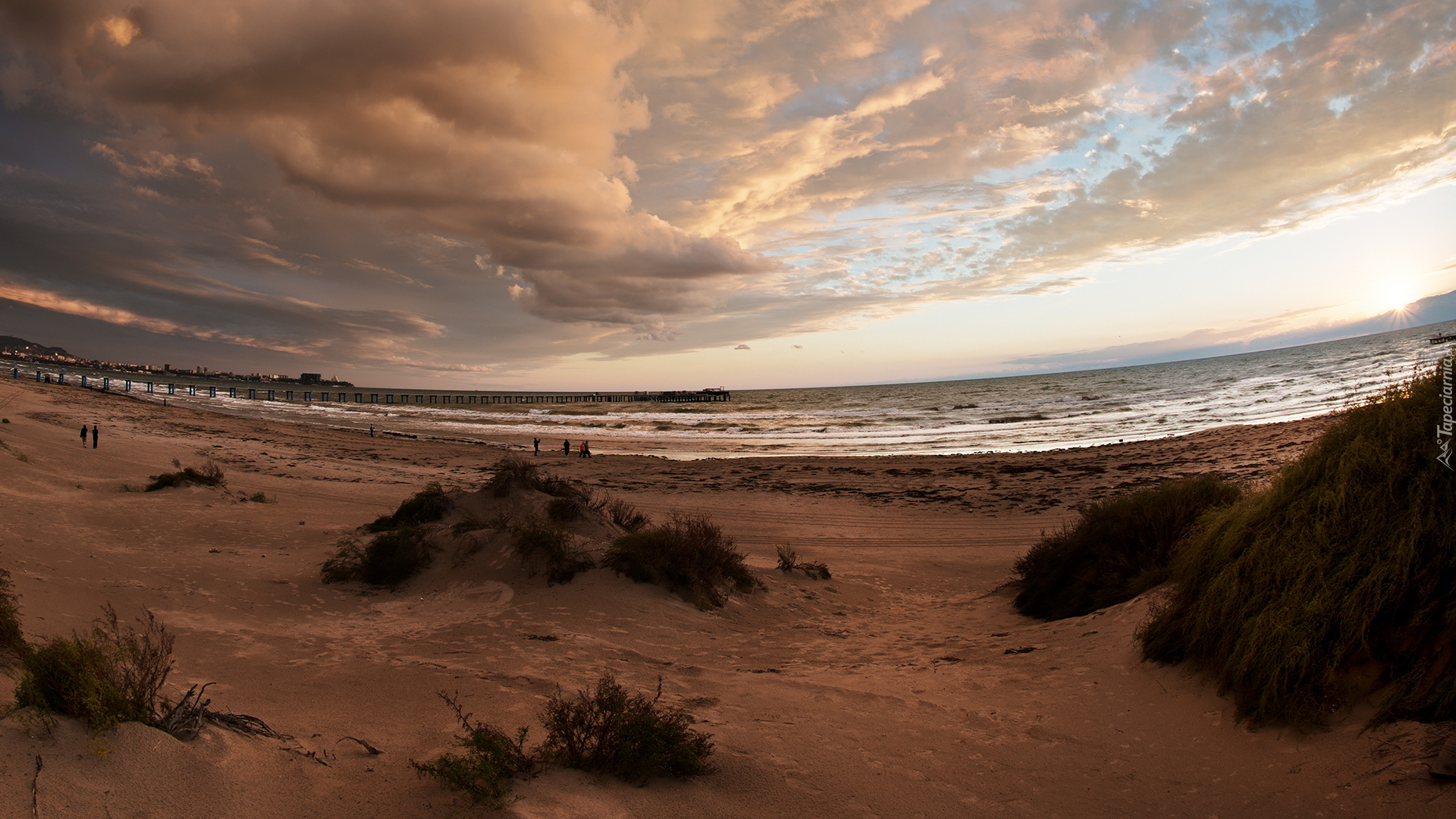 Edytor tapety: Nadmorska plaża o zachodzie słońca