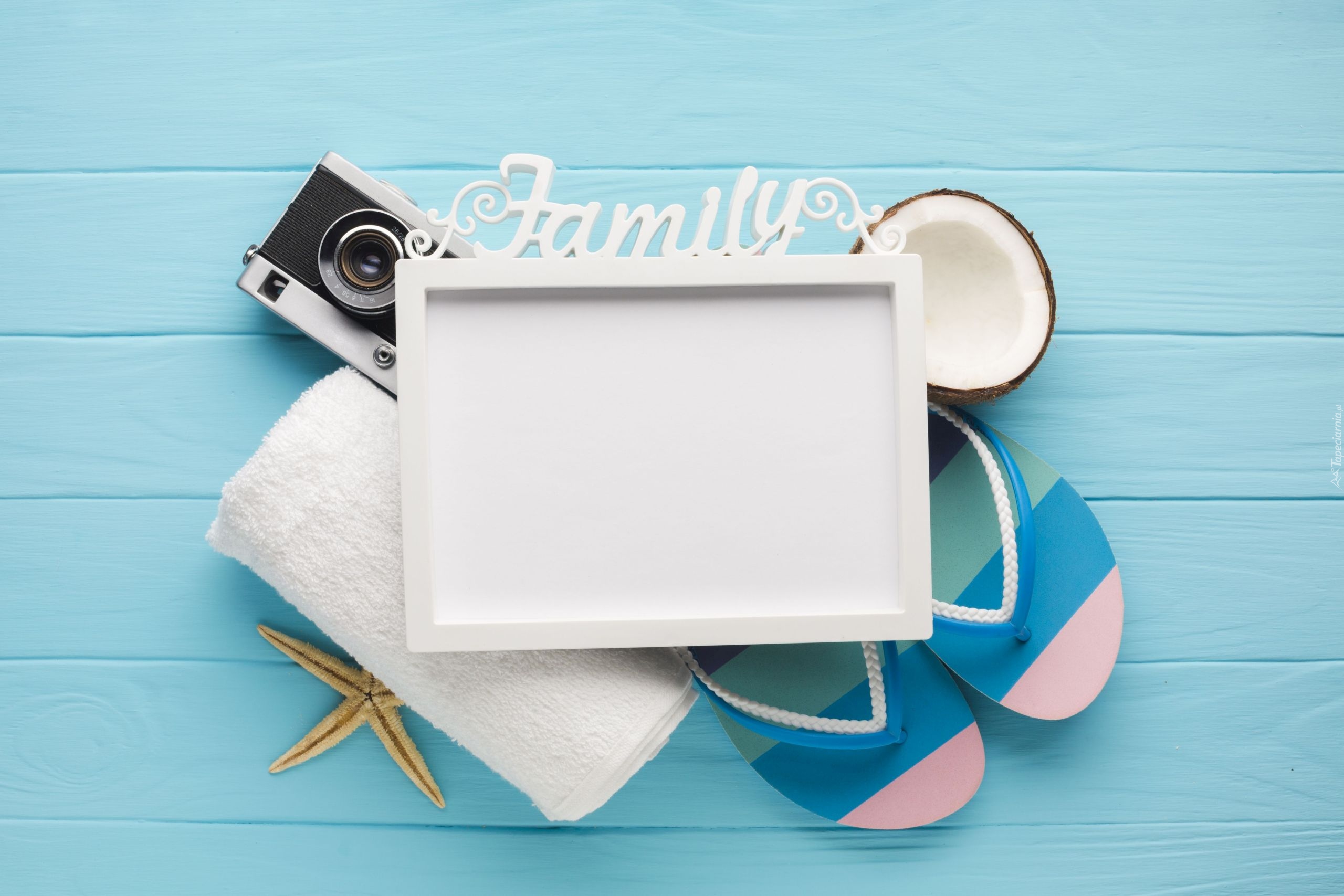 Edytor tapety: Ramka na aparacie fotogtaficznym ręczniku i klapkach