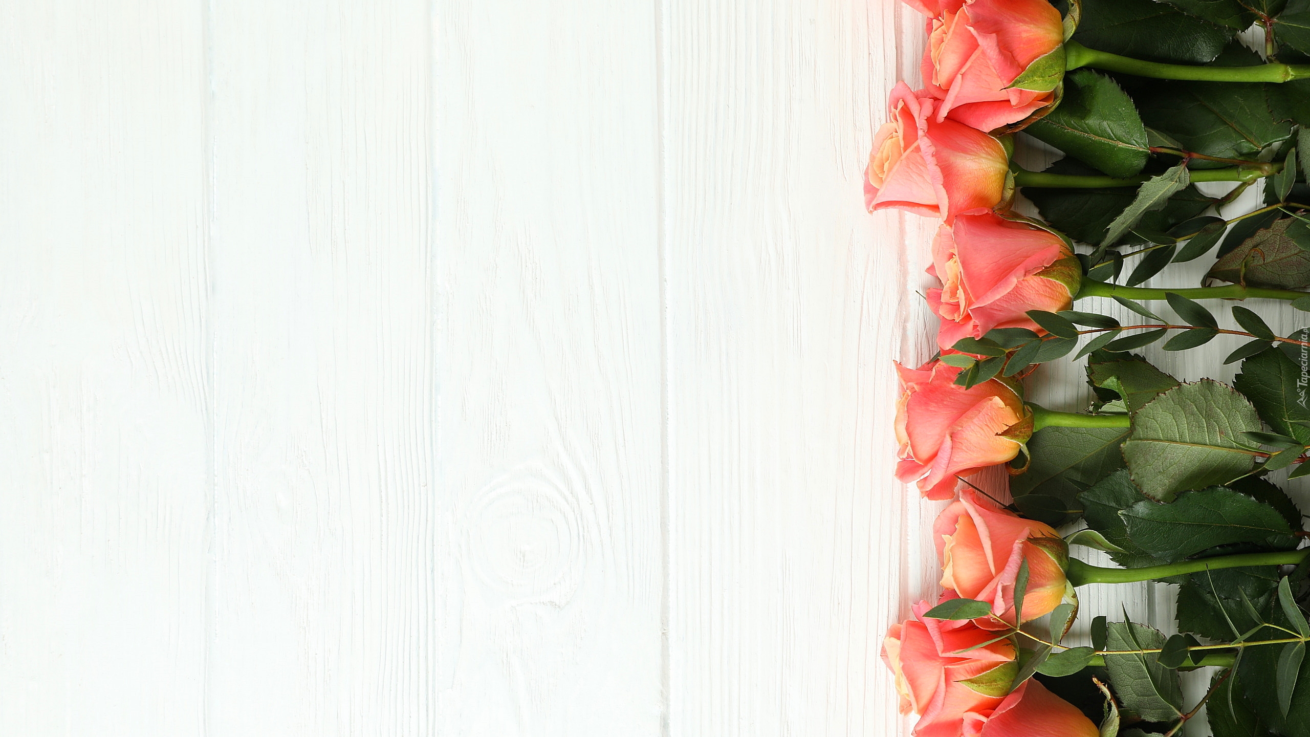 Edytor tapety: Róże na białych deskach