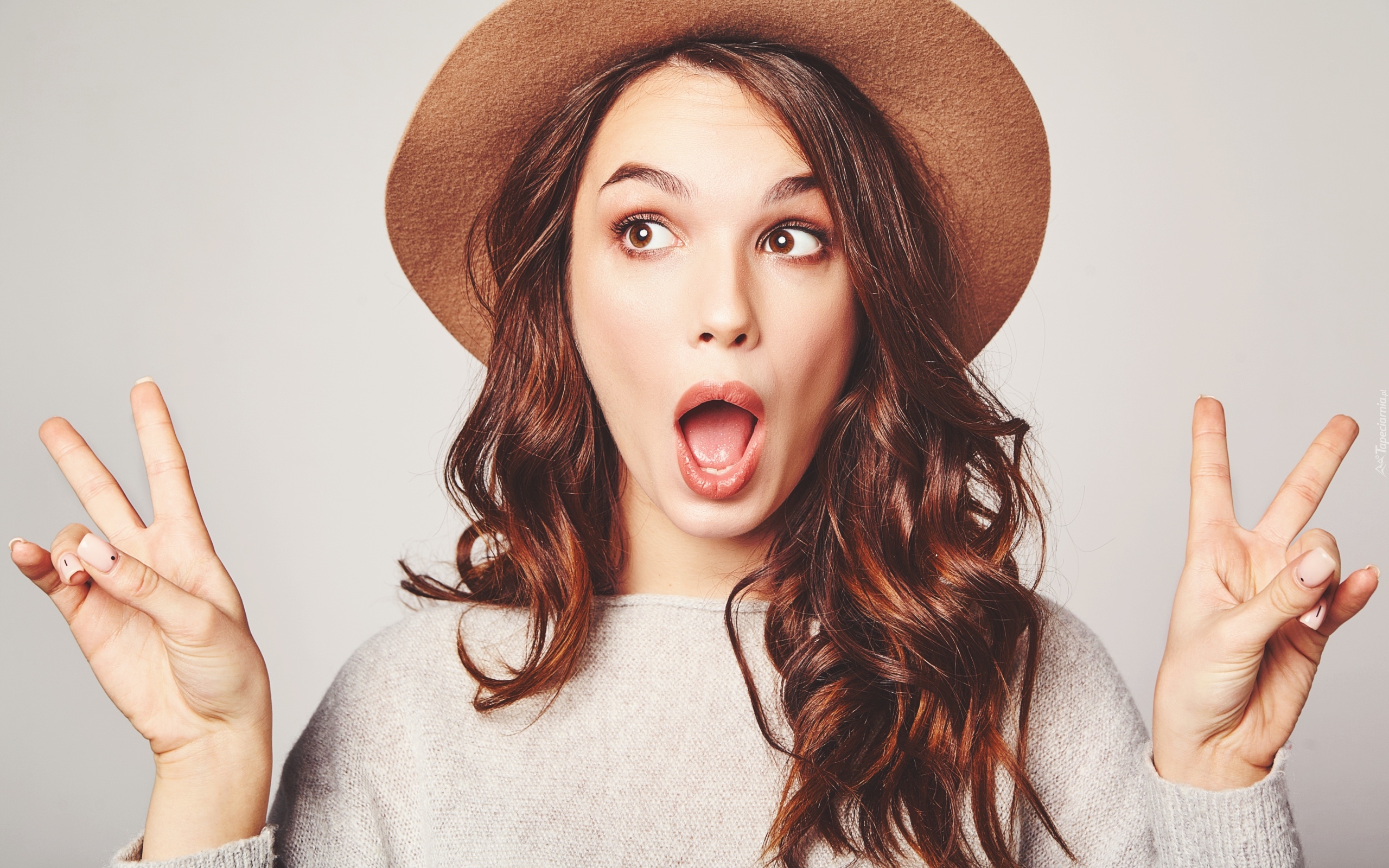 Edytor tapety: Szatynka w brązowym kapeluszu