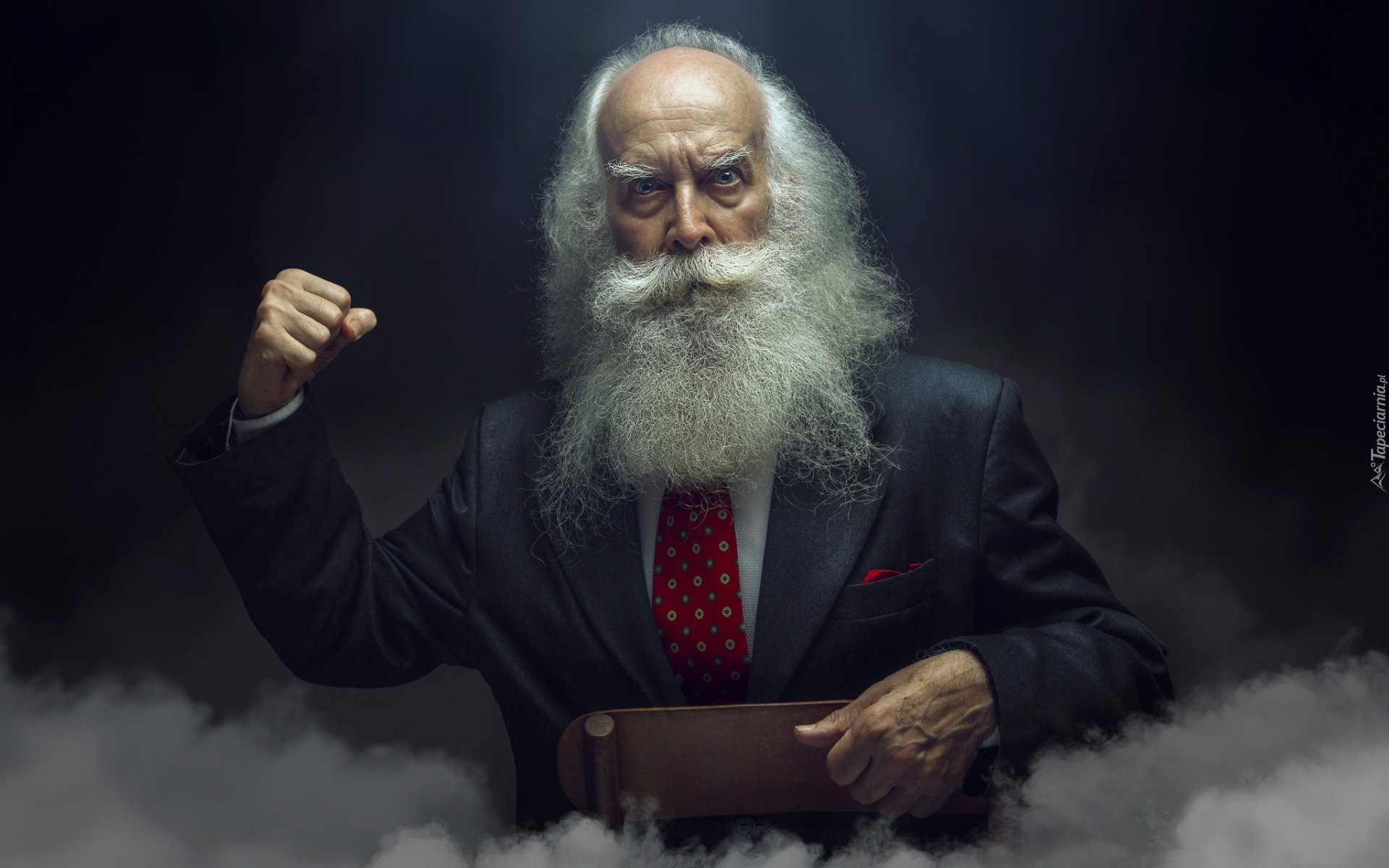 Edytor tapety: Mężczyzna z siwą brodą w garniturze