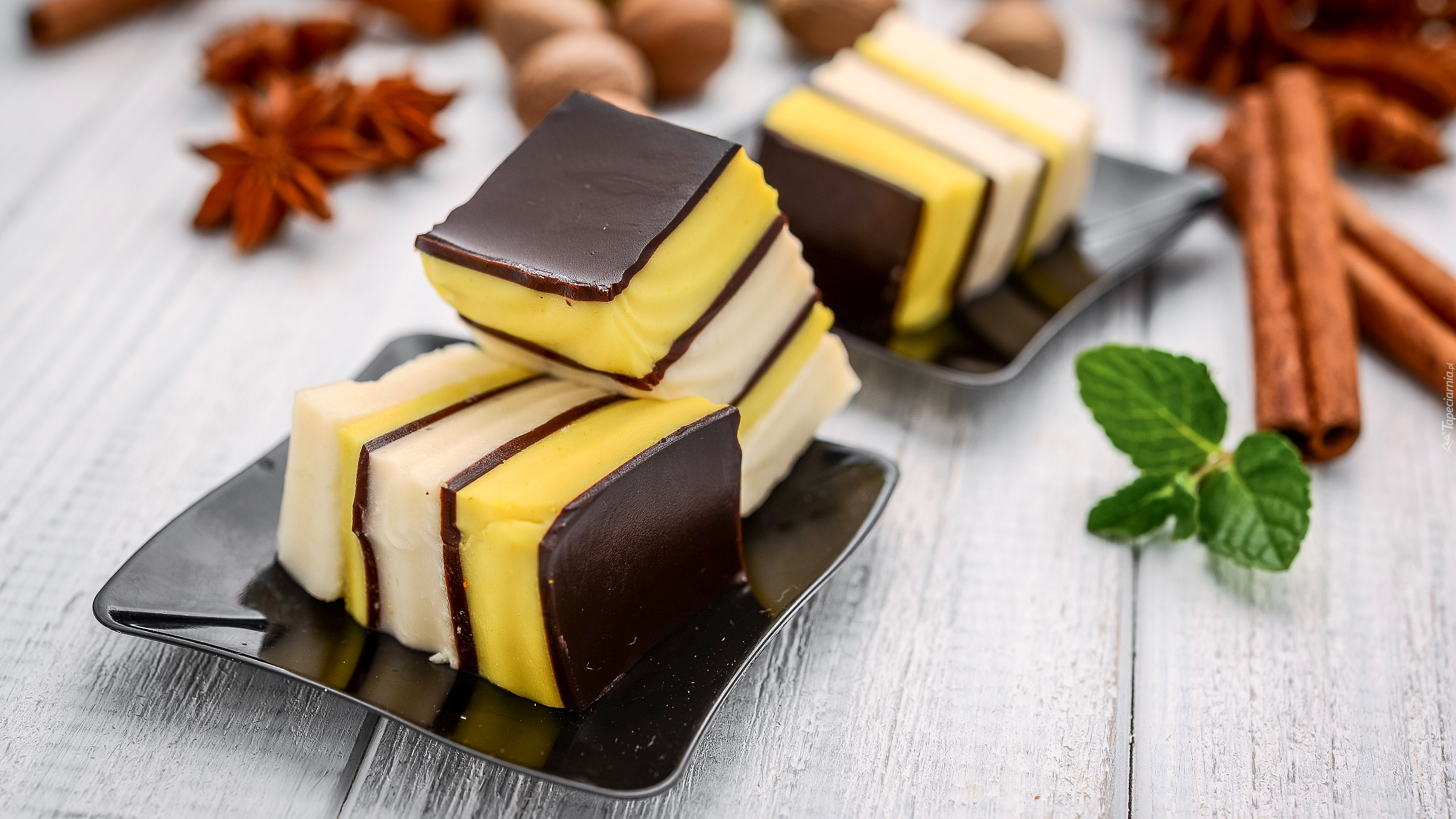 Edytor tapety: Kawałki ciasta budyniowego na talerzyku
