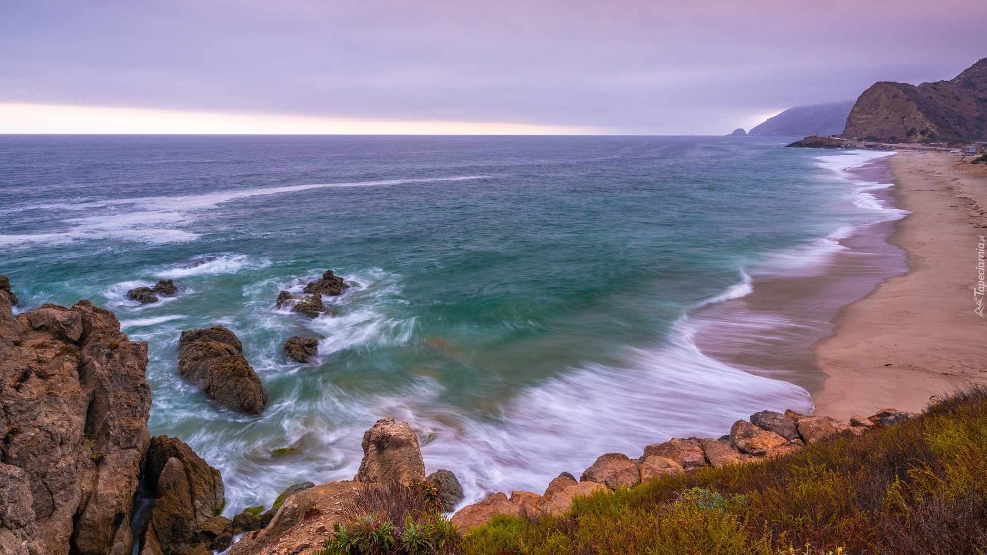 Edytor tapety: Widok ze skał na plażę i morze