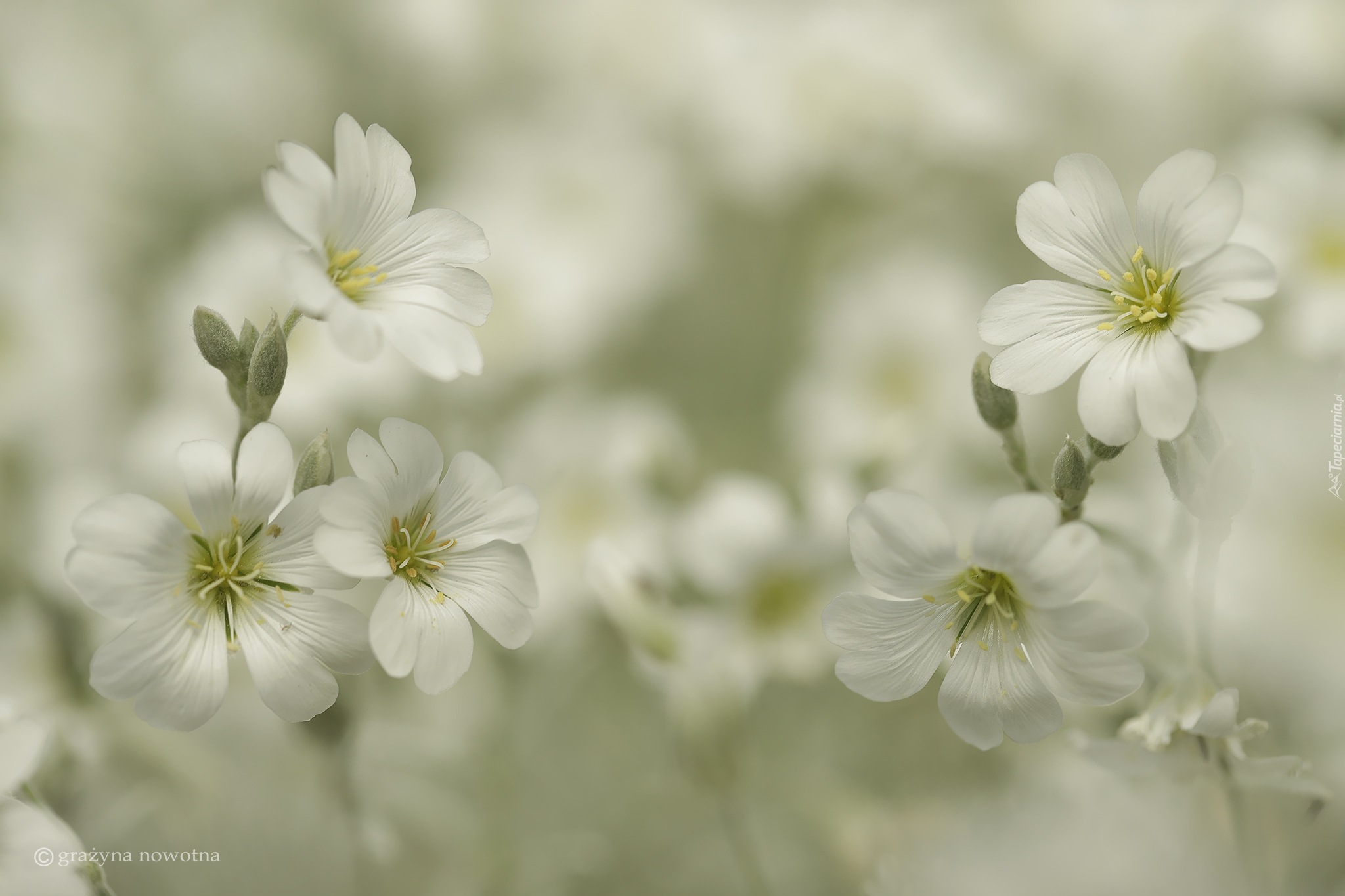 Edytor tapety: Białe kwiaty na rozmytym tle