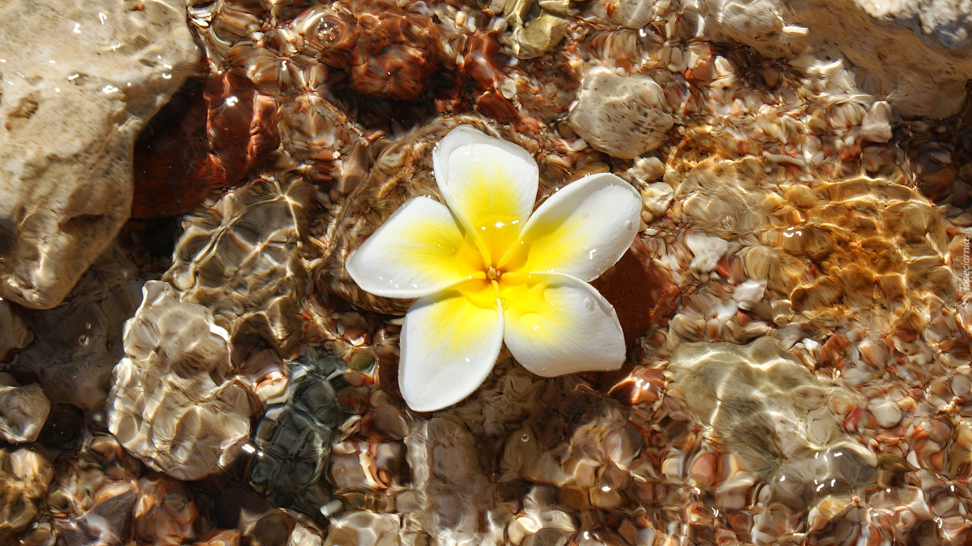Edytor tapety: Plumeria na kamieniach w wodzie