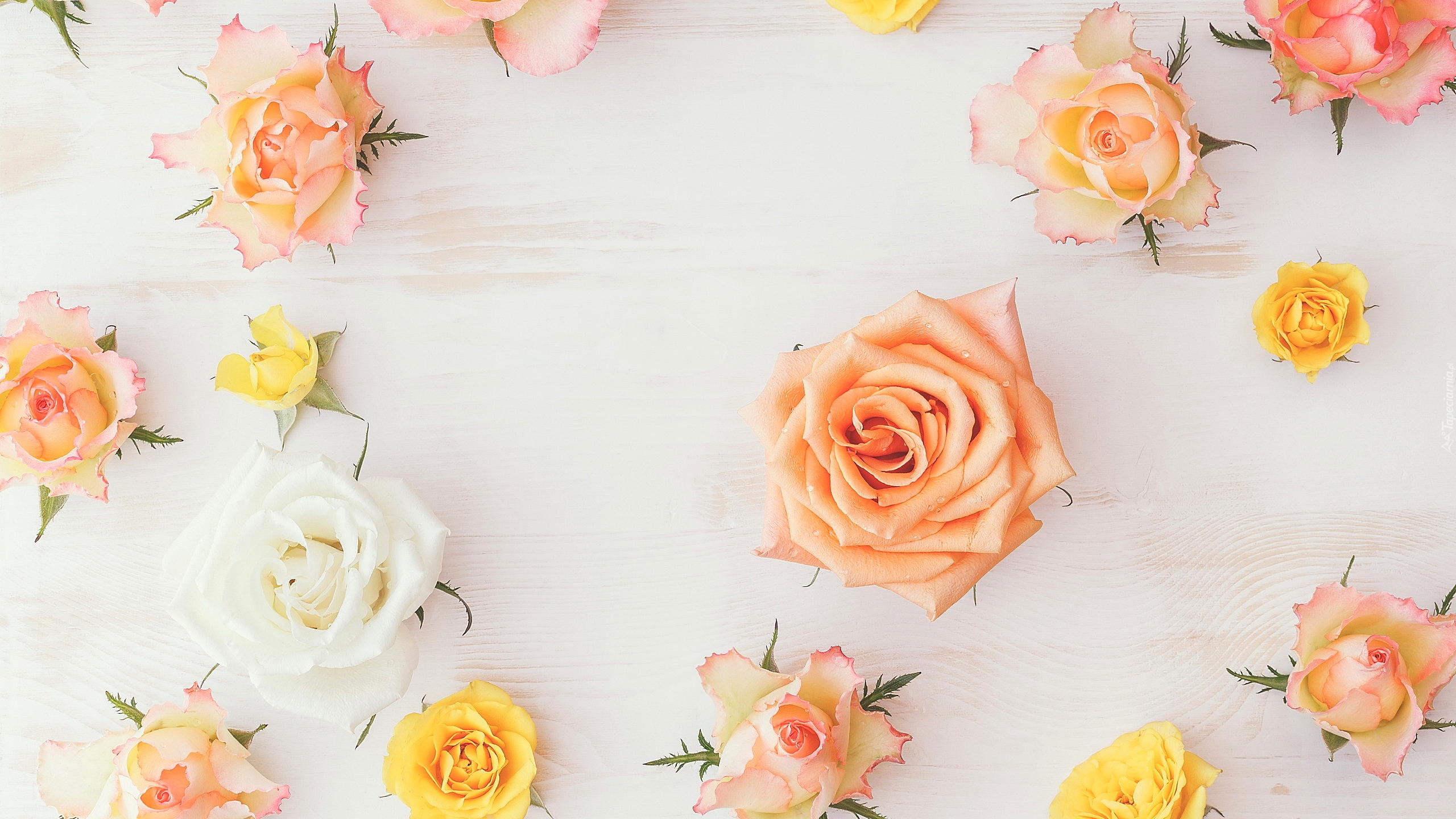 Edytor tapety: Kolorowe pąki róż na drewnie