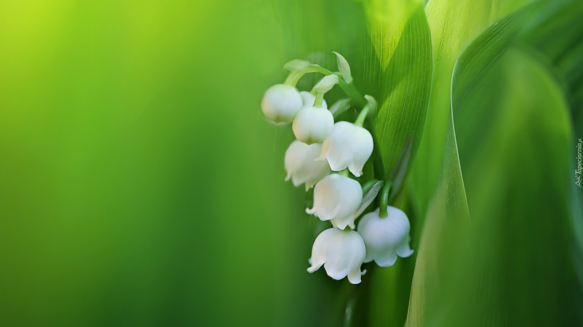 Edytor tapety: Białe kwiaty konwalii na zielonym tle