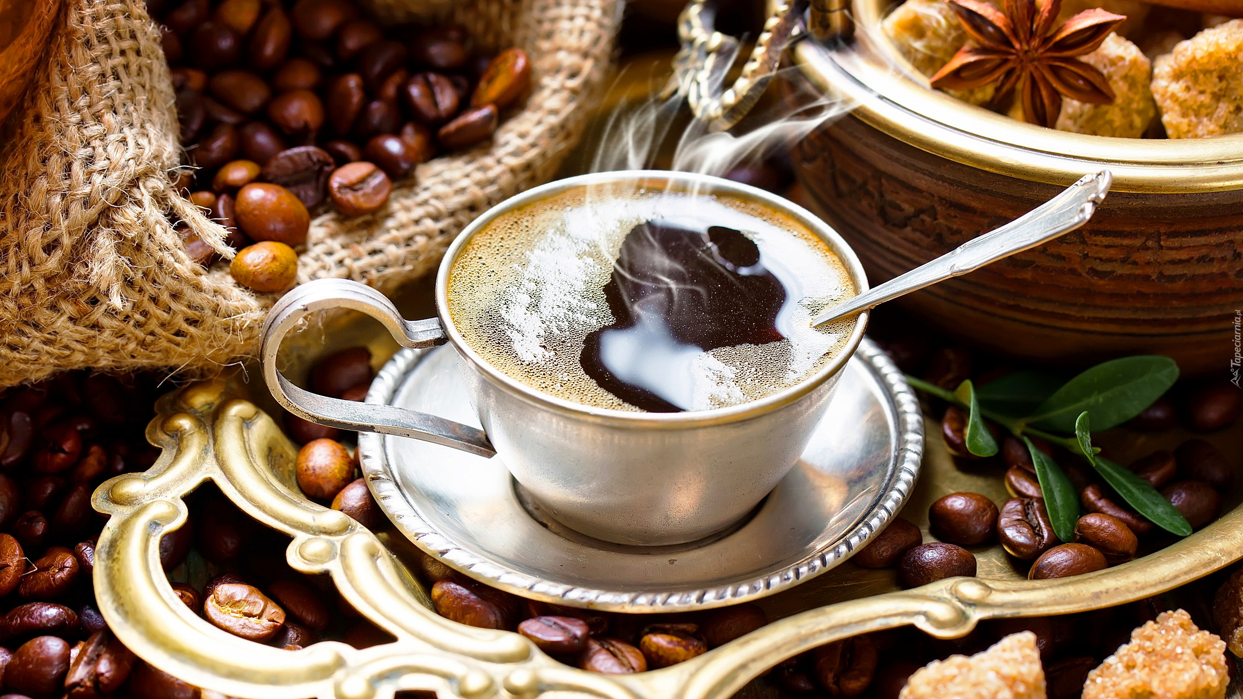 Edytor tapety: Filiżanka kawy na tacy